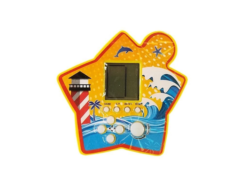 A Tetris az egyik legnépszerűbb elmetréning játék. A feladat különböző formájú blokkokat forgatni úgy, hogy azok a táblán elrendezve kitöltsék a teljes sort. Az elkészült sor eltűnik, így több tételnek marad hely, amíg a kijelző el nem fogy. A játék során ellenőrizheti, hogy melyik tégla lesz a következő, így a felhasználó analitikusan gondolkodhat arról, mi legyen a következő lépése. Minden sor eltávolításával a játék sebessége nő, és a tárgyak gyorsabban esnek. A csillag alakú tokban lévő elektronikus játék nagyon könnyű, ami kis méretével párosulva zsebre rakható opcióvá teszi, amit bárhová magunkkal vihetünk. Kijelzőből és a játékfunkciókért felelős fehér gombokból áll. Segítségükkel elindíthatjuk és leállíthatjuk a játékot, szüneteltethetjük a játékot, elnémíthatjuk a hangokat, vagy alaphelyzetbe állíthatjuk a táblát, hogy elölről kezdhessük a blokkok lerakását. A többi gomb a játék közbeni navigációra, valamint a blokkok forgatására szolgál. Az elektronikus játék zsebváltozata gyermeknek és felnőttnek egyaránt kellemessé teszi az időt. Tökéletes lesz az órák közötti szünethez, valamint a buszon vagy otthon pihenés közben.