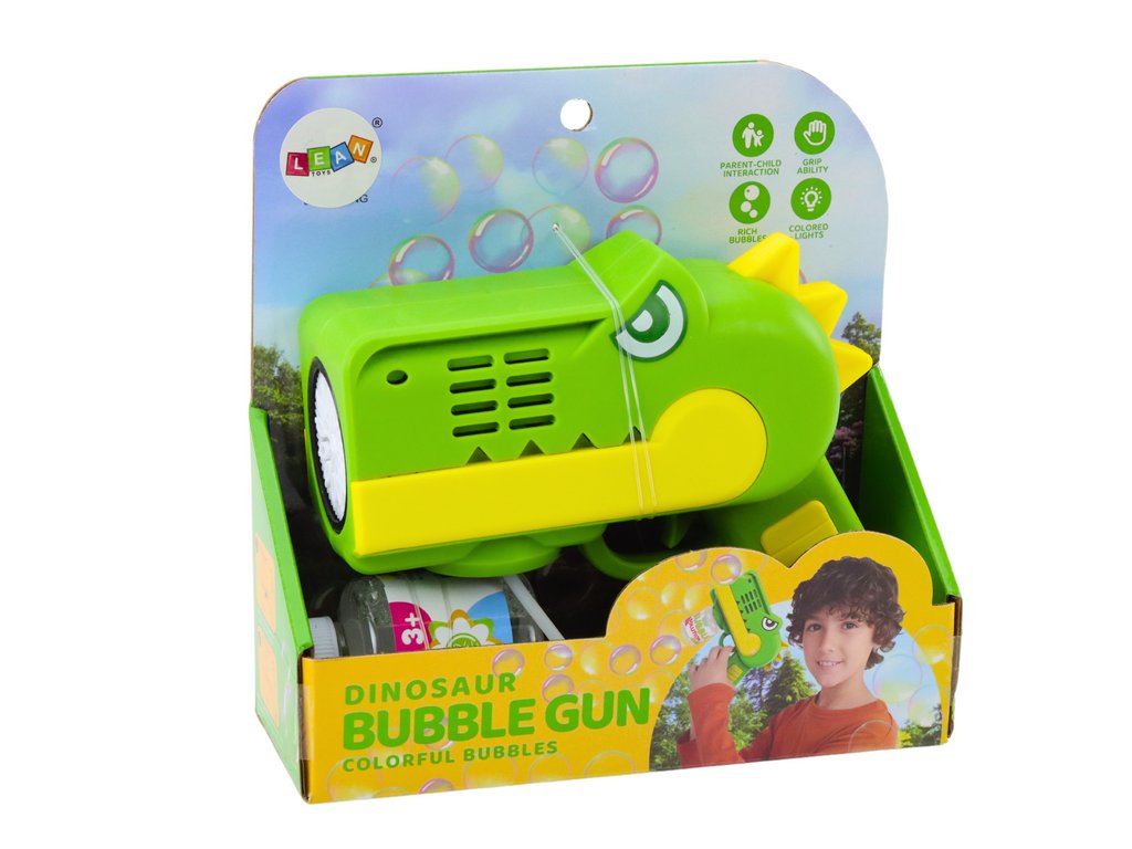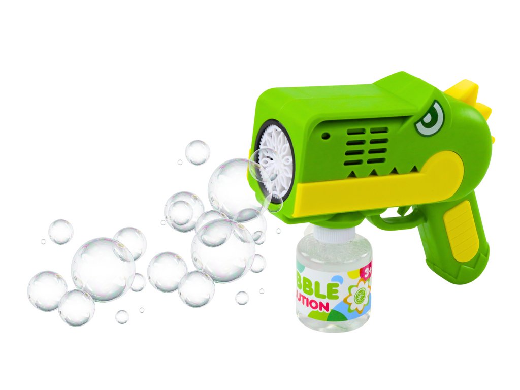 Ez a buborékfegyver egy népszerű játék, amely sok örömet okoz a gyerekeknek. Egy aranyos dinoszaurusz formájú, vonzó dizájnjával és intenzív zöld színével serkenti a gyerekek fantáziáját. Csak nyomja meg a gombot, és a pisztoly elkezd színes buborékokat létrehozni, órákig tartó szórakozást biztosítva.