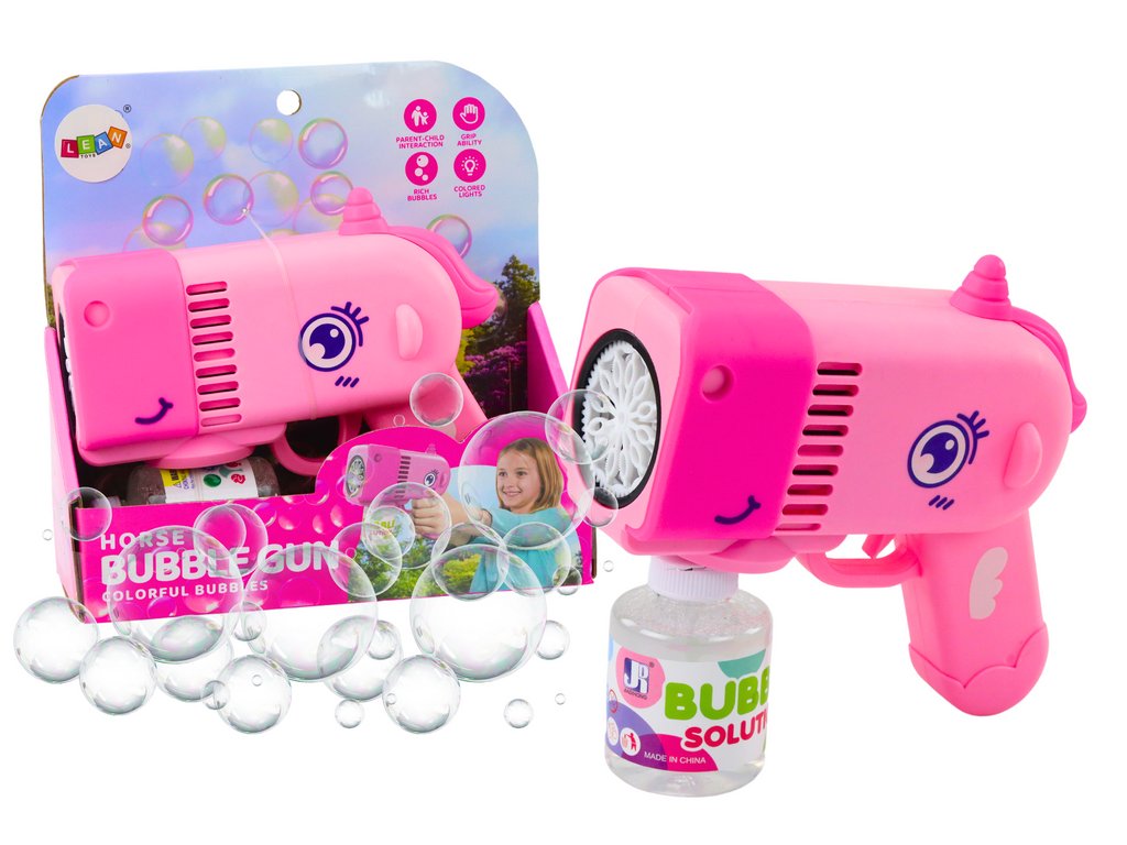 A rózsaszín egyszarvú formájú buborékfújó egy népszerű játék, amely a buborékos játékok mókáját és varázslatát hozza el a gyerekeknek. Kompakt formájának és vonzó megjelenésének köszönhetően könnyen elfér a hátizsákban, ideális játszótérre vagy sétákra.