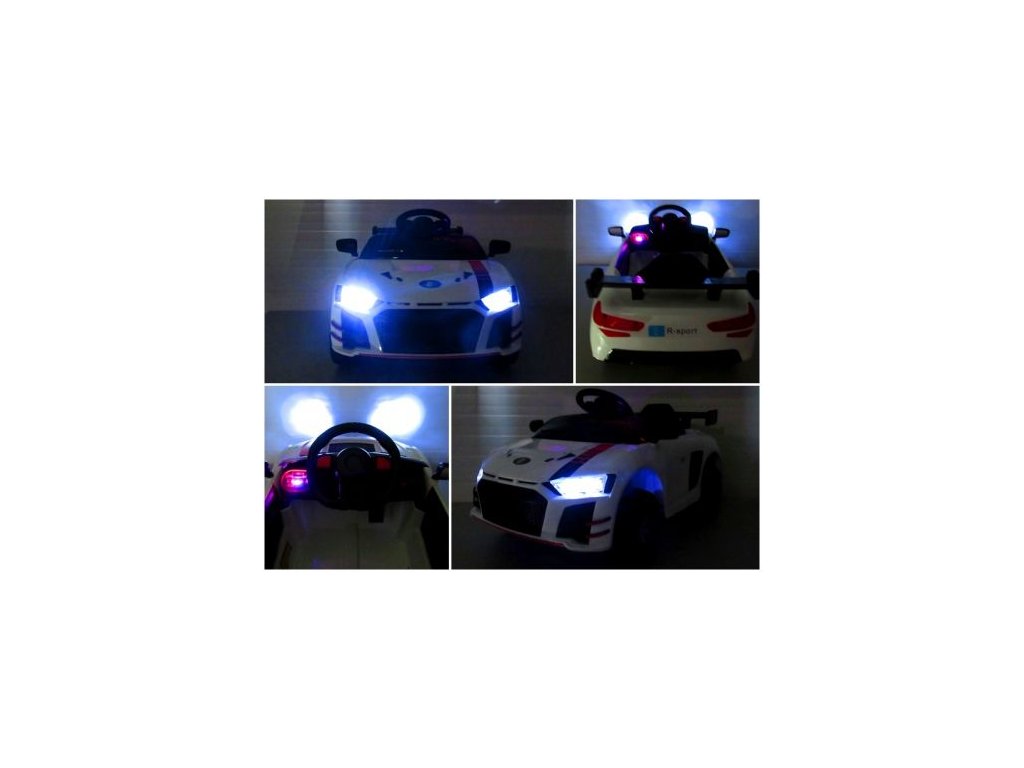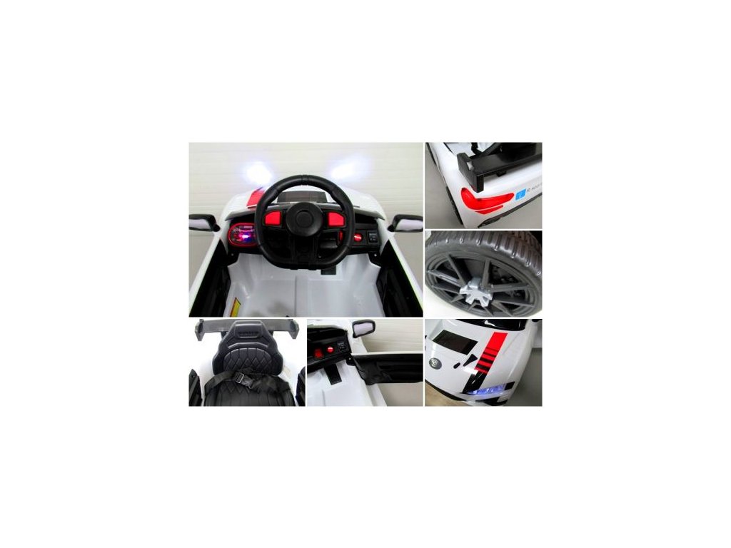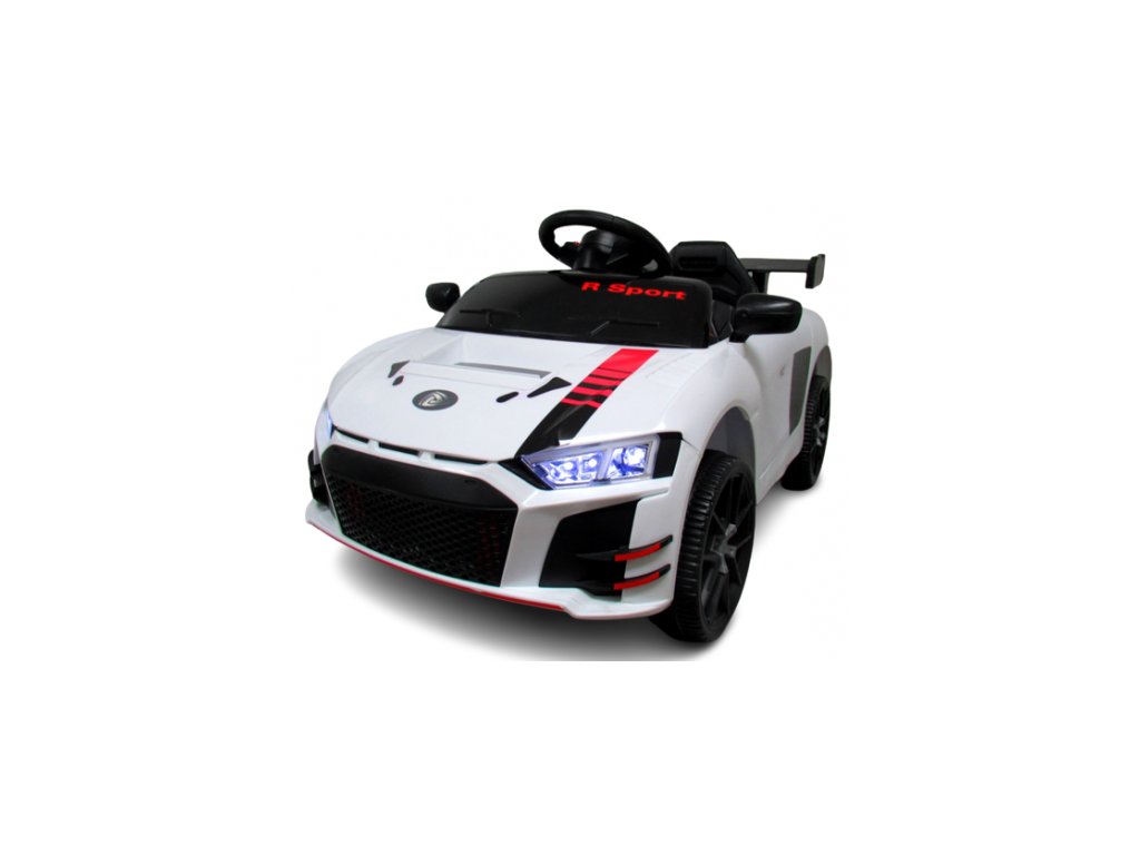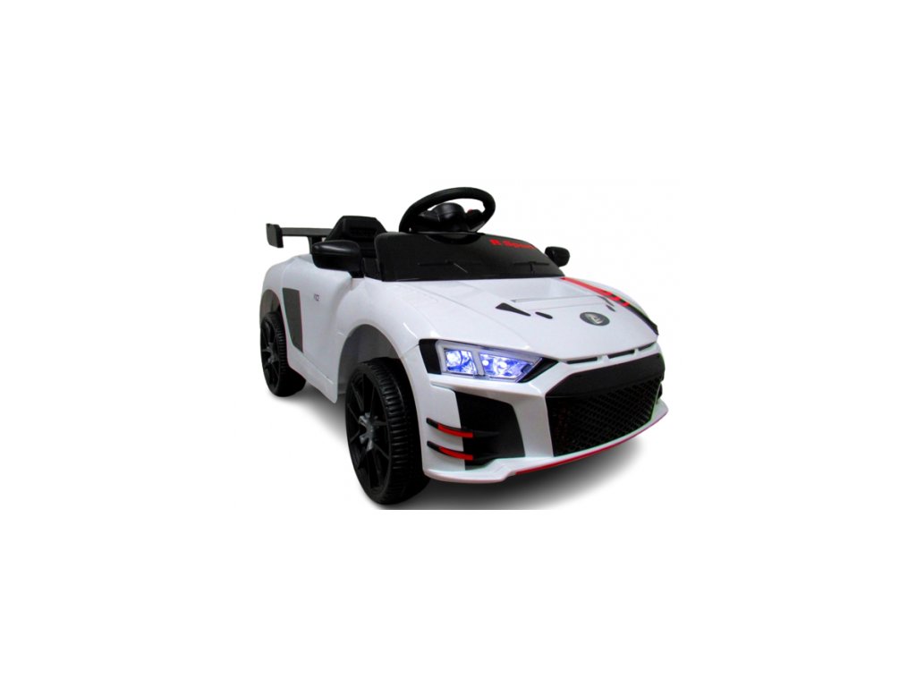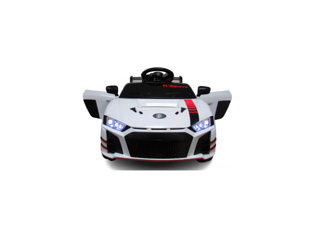 Cabrio A1 gyerekautó gazdag felszereltséggel és innovatív dizájnnal. A játékautó belseje biztonsági övvel ellátott üléssel, MP3 bemenettel rendelkező zenepanellel és dallamokkal ellátott gombokkal van felszerelve. Az első LED-lámpák megvilágítják az utat.