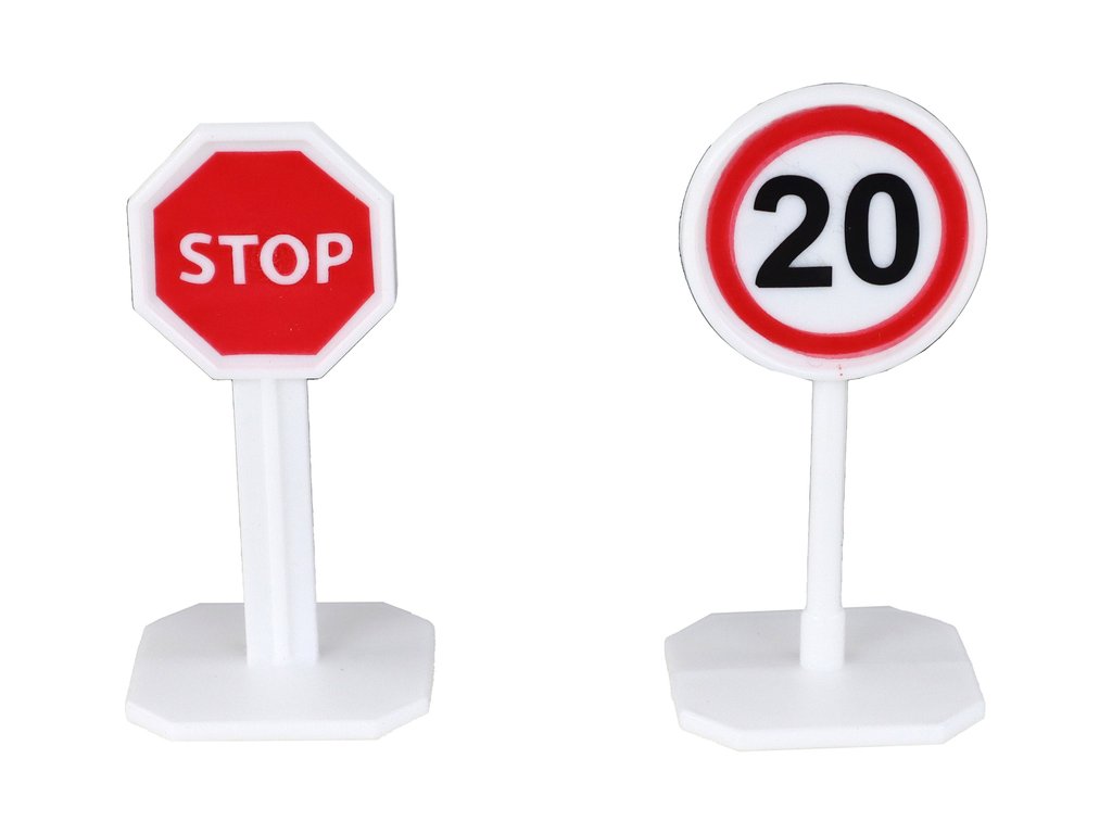 Ezenkívül a készlet tartalmaz egy sor útjelző táblát , amelyek segítenek az útvonalak kialakításában, és jelzik a fontos pontokat az út mentén. Ideális lehetőség a KRESZ alapjainak játékos formában történő elsajátítására.