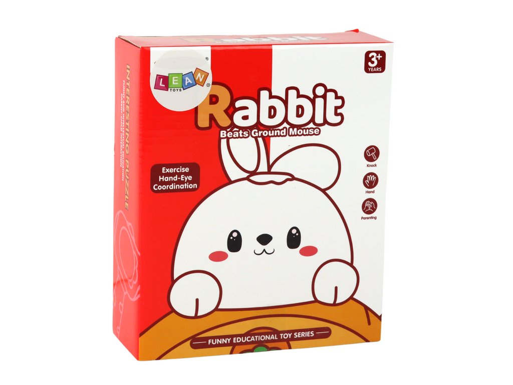 A játék egy aranyos nyuszi motívummal ellátott panelt tartalmaz, amely kellemes esztétikai elemet ad, és felkelti a gyerekek figyelmét. Az animált nyuszi képek játékos hangulatot kölcsönöznek. A készlet tartalmaz egy speciális mezőt, amelyre hat sárgarépa kerül. A sárgarépa véletlenszerű lyukakból pattan ki a mezőn, ami izgalmasabbá és kiszámíthatatlanabbá teszi a játékot.
