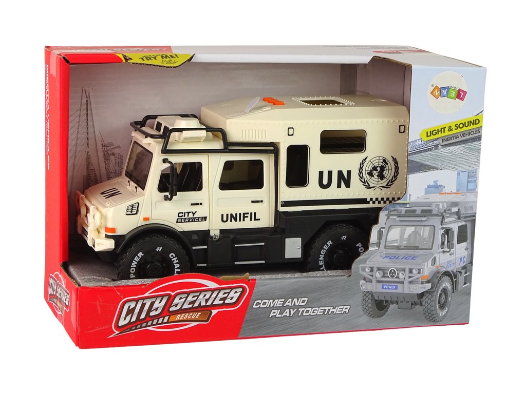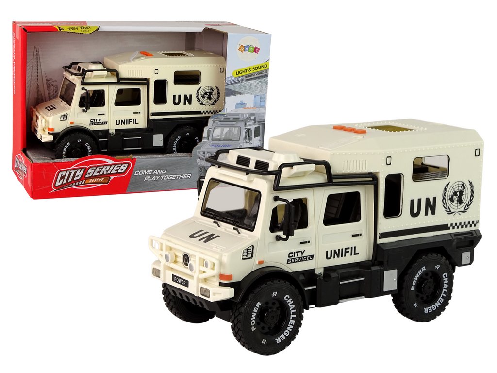 Az egyik leglenyűgözőbb elem a fényhatás . A jármű elején lévő LED-lámpák világítanak, ha a jármű tetején található három gomb egyikét megnyomják. Ez azt a benyomást kelti, hogy a jármű valóban aktív, ami még több valósághűséget és izgalmat kölcsönöz neki. Ezenkívül a gomb megnyomásakor a vészjelzés hangja hallatszik, ami még tovább fokozza a szórakozást.