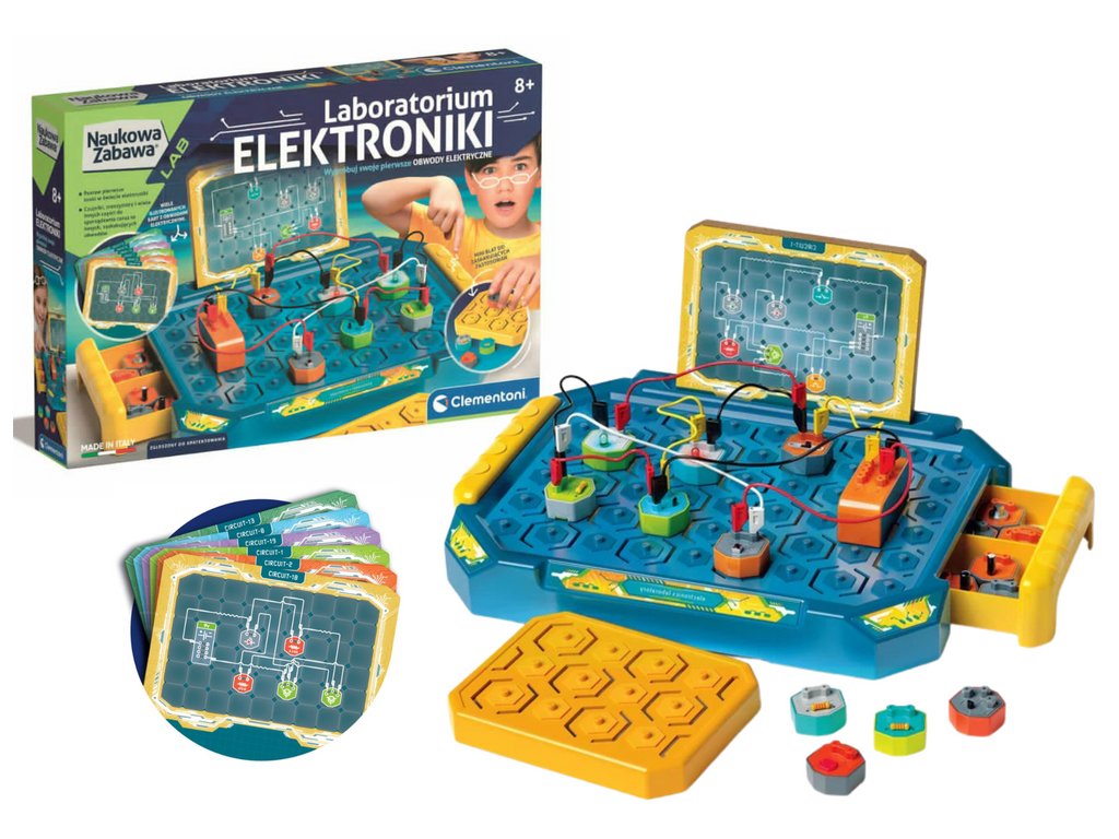 Fedezze fel az elektronika lenyűgöző világát ezzel a funkcionális áramkörépítő laborral . A készlet olyan szabadalmaztatott modulokat és alkatrészeket tartalmaz, amelyek segítségével a gyerekek elektromos csatlakozásokat hozhatnak létre, és játékos formában sajátíthatják el az elektronika alapjait.