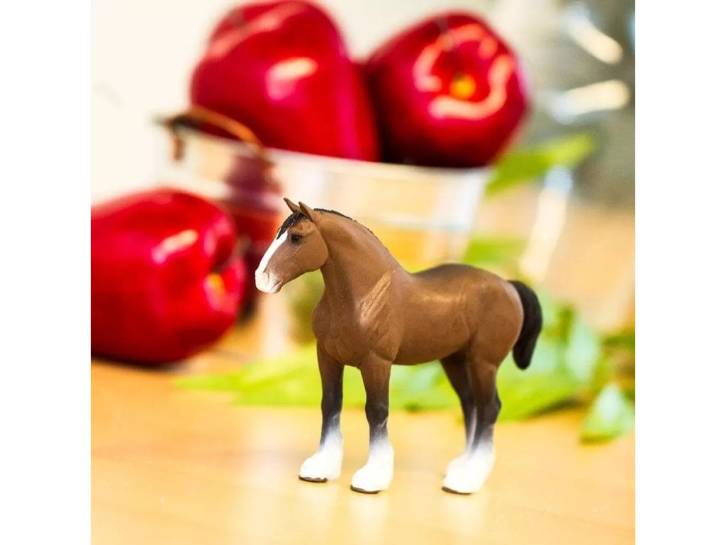 A Clydesdale fajta részletesen kidolgozott figurája. Jellemzője a paták feletti jellegzetes fehér szőrzet, professzionálisan formázott és kézzel festett.
