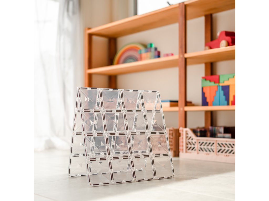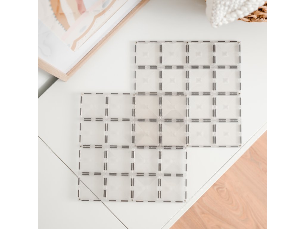 Bővítse mágneses építőkészletének lehetőségeit ezzel az átlátszó alapkészlettel , amely lehetővé teszi a gyermekek számára, hogy bonyolultabb és magasabb szerkezeteket készítsenek. Átlátszó színüknek köszönhetően ezek a csempék nem zavarják meg az épületek színes megjelenését, hanem tökéletesen kiegészítik például a labdapályát vagy a szilárd alapot igénylő szerkezeteket. Ezenkívül virágokat , képeket vagy egyéb dekorációkat nyomhat ezekbe a csempékbe, hogy bármilyen épületet egyedivé varázsoljon.