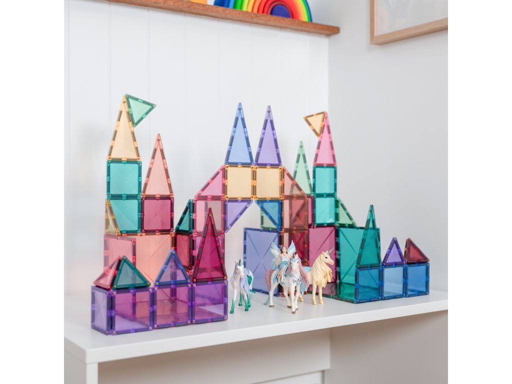 Hozzon létre végtelen világokat, tele szórakozással és kreativitással . Fedezze fel a mágneses épület varázsát a pasztell Connetix csempekészlettel . Ez a 64 részes, lágy pasztell színekben pompázó kezdőkészlet a lehetőségek végtelen világát nyitja meg a gyerekek előtt. Építsen eredeti kastélyt , tervezzen mozgó járműveket , vagy egyszerűen csak élvezze a különböző formák összekapcsolását . Minden darab, legyen az négyzet vagy háromszög, könnyen csatlakoztatható a stabilitást és tartást biztosító mágneseknek köszönhetően. Soha nem fog unatkozni ezzel az építőkészlettel!