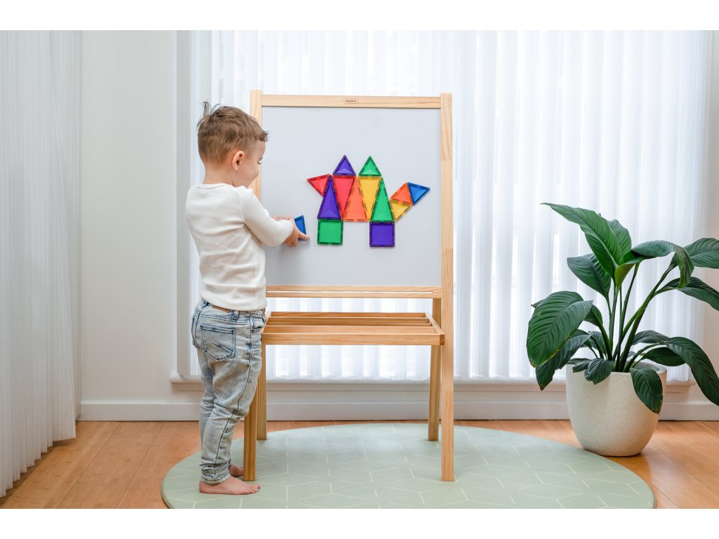 Az egyszerű mágneses csatlakozások lehetővé teszik a darabok egyszerű elhelyezését, amelyek szilárdan összetartják őket. Az állandó építkezés és lebontás kreativitásra és a mozgáskoordinációra ösztönöz.