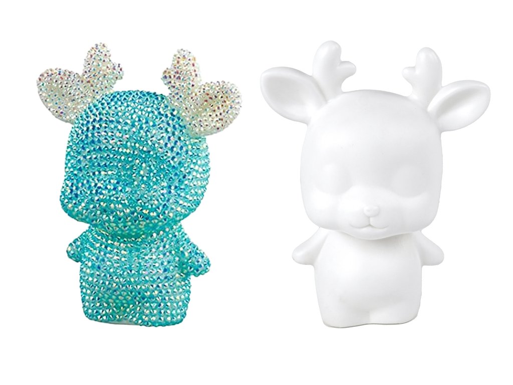 A készlet tartalmaz egy speciális szőnyeget , amelyre a gyémántokat helyezik, két színben díszítheti a kis rénszarvast az Ön kívánsága szerint. A speciális ragasztónak köszönhetően a figura felülete ragacsos lesz, így a gyémántok is megtapadnak.