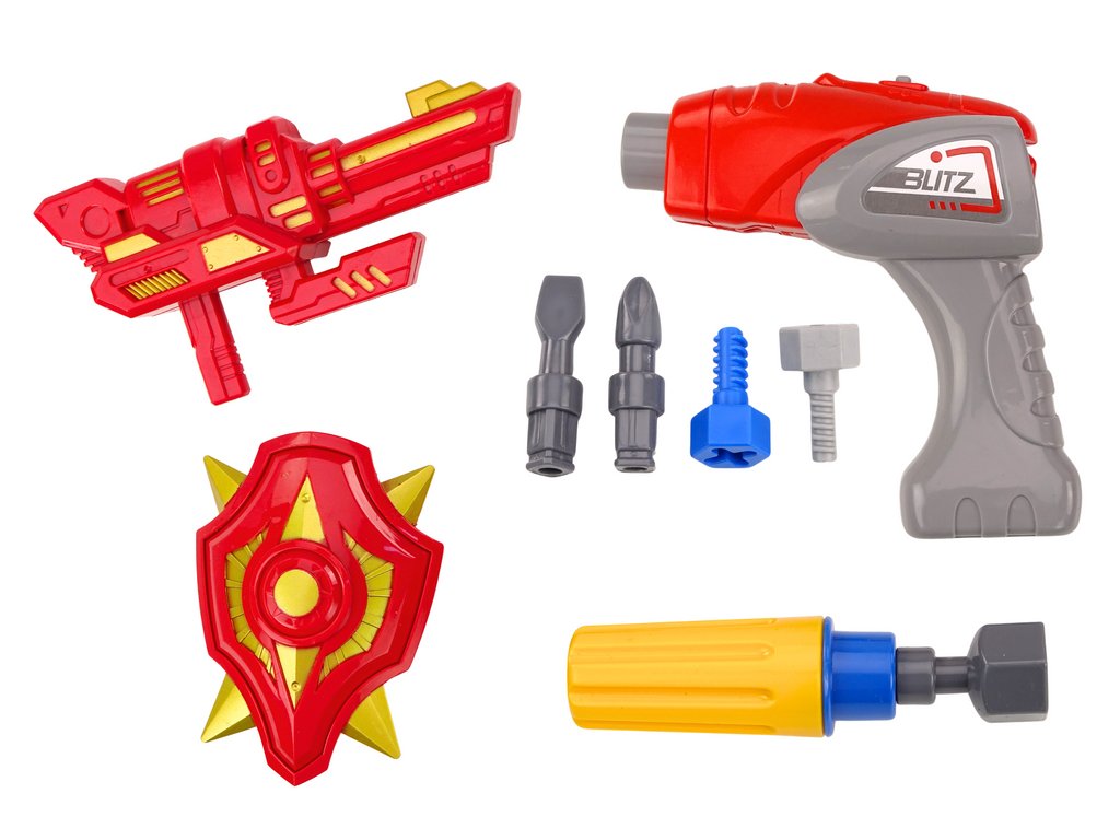 Építő robotfegyver fúró csavarhúzó fény hang türkiz