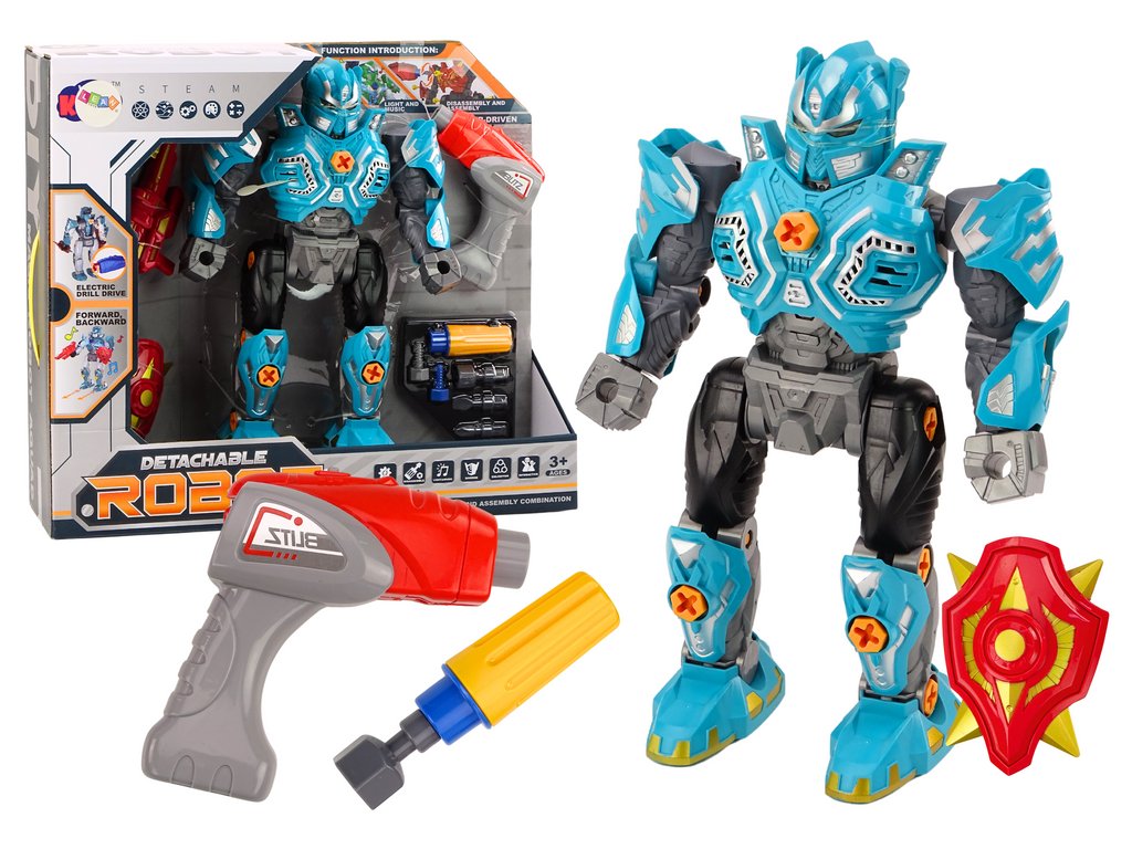 A robot összeszerelése után a fúróakkumulátor hajtásként használható, mozgásra késztetve a robotot. Ez a funkció nagymértékben növeli a játék interaktivitását, lehetővé téve, hogy a gyermek még jobban bekapcsolódjon a tevékenységbe. A robot mozgása realizmust és dinamikát ad, ami izgalmasabbá teszi a játékot. További látványosság a fény- és hanghatások, amelyeket a robot a játék során hoz létre. A fényes elemek és a valósághű hangok felkeltik a gyermek figyelmét, és fokozzák a játékkal való interakció benyomásait.