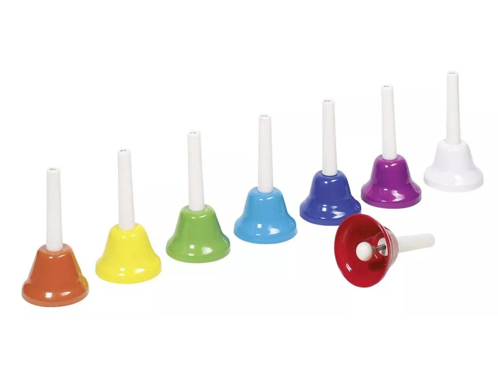 A műanyagból és fémből készült színes csengők minden gyerekszobába illenek. Minden csengő más hangot ad ki, ami elősegíti a gyermekek érdeklődését a zene és a ritmus iránt.