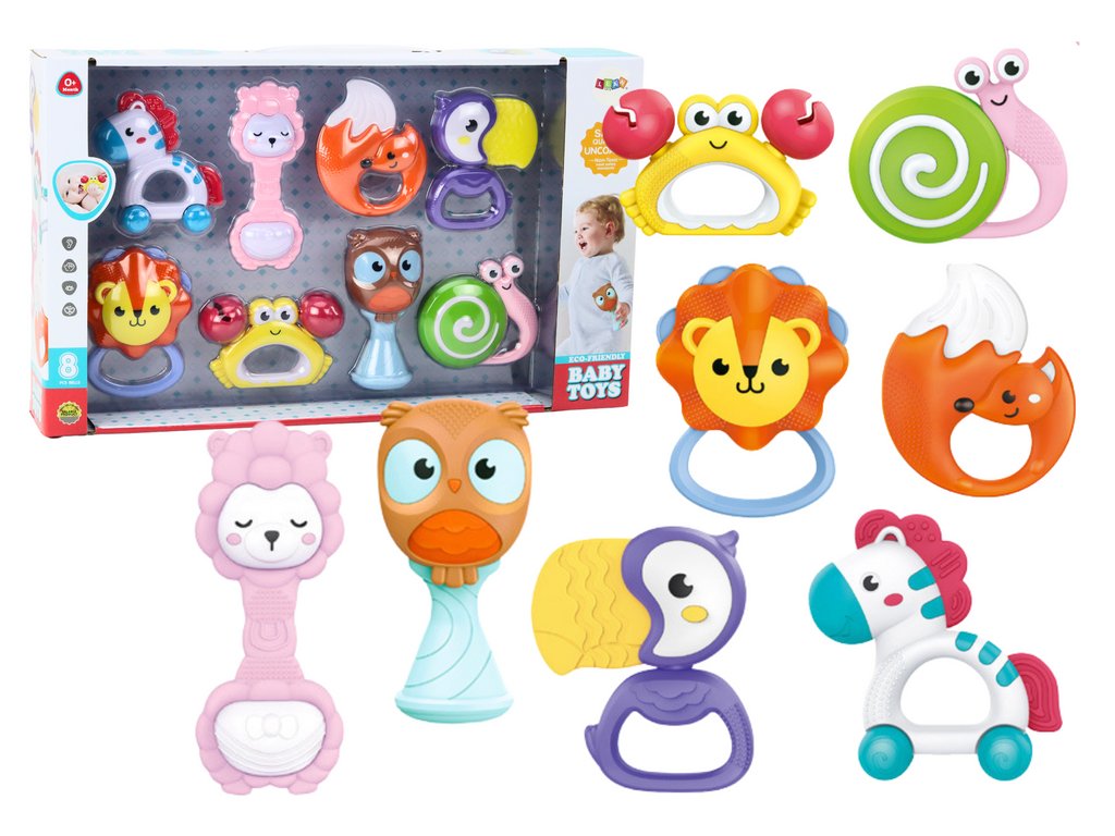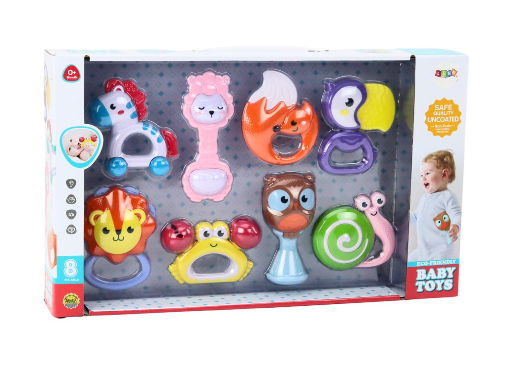 A baba csörgő készlet egy ideális játékgyűjtemény, amely nem csak fejleszti a baba érzékszerveit, de a felfedezés örömét is elhozza. A készletben nyolc csörgő található, amelyek mindegyikének egyedi formája van, és más-más állatra emlékeztet. Kiváló minőségű anyagokból készültek, amelyek garantálják a biztonságot és a tartósságot.