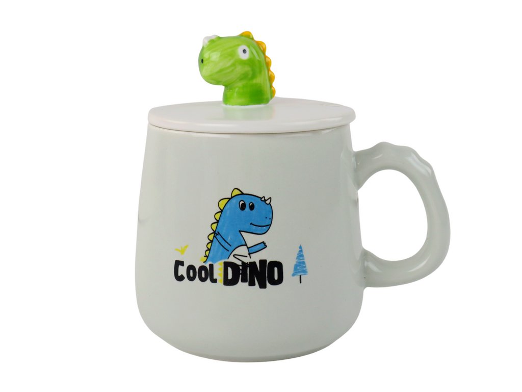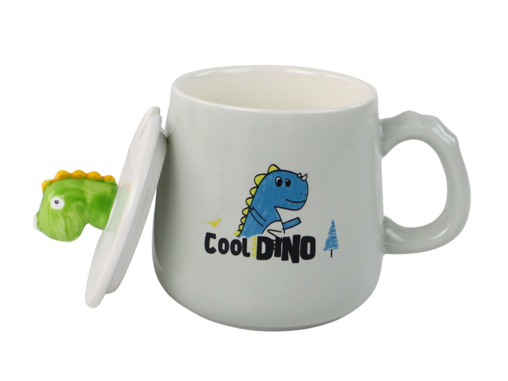 A dinoszaurusz motívumot gondosan festették a bögre felületére, így nem csak praktikus étkészlet, hanem vonzó díszítőelem is. A bögre fedéllel van felszerelve, amely nem csak az ital hőmérsékletét tartja fenn, hanem megvédi a véletlen kiömléstől is.