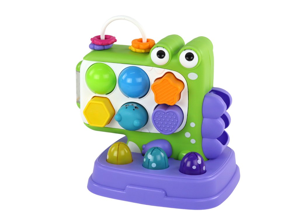 Az első elem, amely támogatja a játékot, a "Whac-a-Mole" játék . A panelen három aranyos dinoszaurusz tojás található, amelyek véletlenszerűen pattannak ki a lyukakból, és a gyereknek gyorsan le kell ütnie őket a készletben található kalapáccsal. Ez a dinamikus játék nemcsak a szem-kéz koordinációt fejleszti, hanem megtanítja a gyerekeket reagálni és összpontosítani.