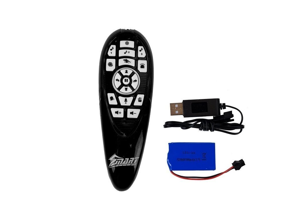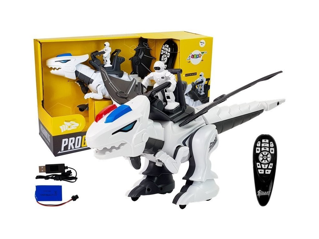 A dinoszauruszok méretük és rejtélyük miatt nagyon népszerűek a több éves fiúk körében. Ebben a korban a gyerekek is szeretnék első házi kedvenceiket. Interaktív modern R/C dinoszauruszunkkal egyszerre két álmot valósíthat meg! A szája erőteljes állkapcsokkal, erős alsó végtagokkal és hosszú, ostorszerű farokkal rendelkezik. A hátoldalon egy dinoszauruszt irányító férfi alakja látható. A mechanikus dinoszaurusznak is vannak robotelemei – a szemei világítanak. A dinoszaurusz távirányítóval vezérelhető, amely kényelmesen elfér a kézben. Parancsok kiadására használható, rögzítési funkciója van. A dinoszaurusz reagál az olyan jellemzőkre, mint a mozgás vagy a tánc.
