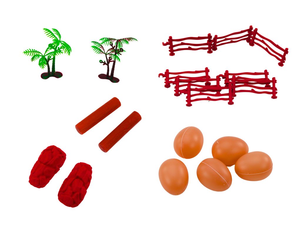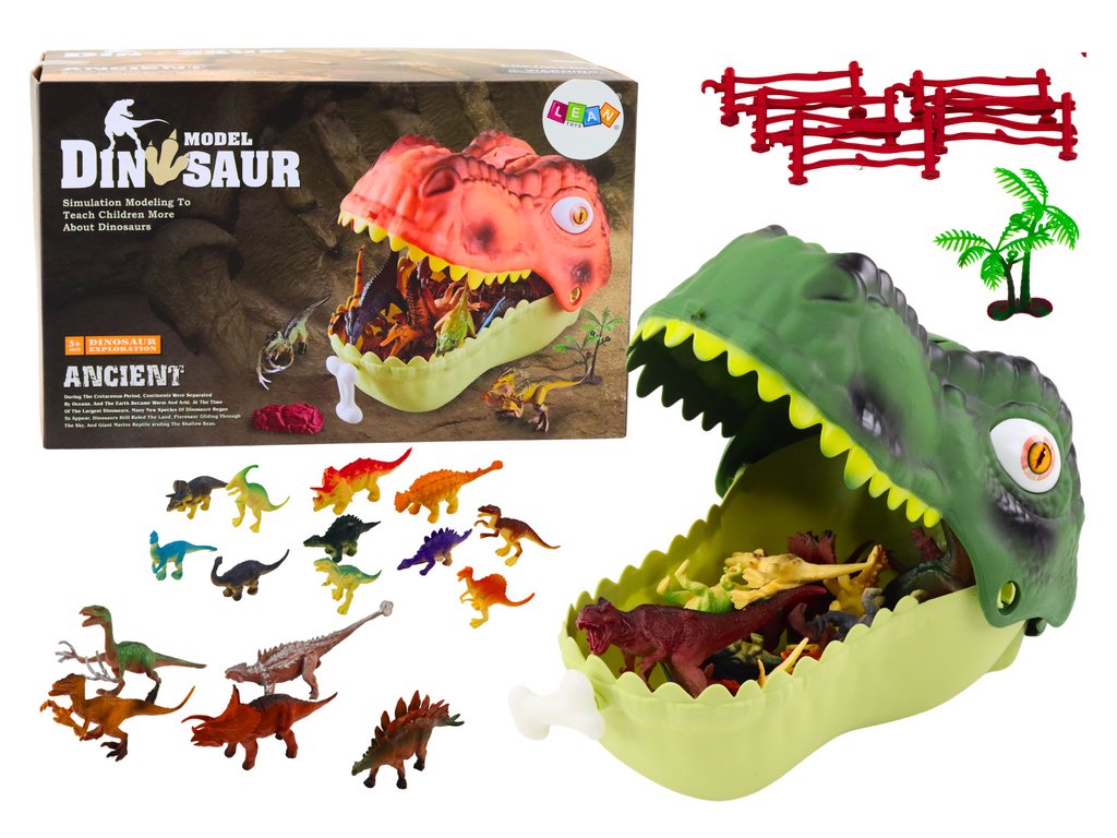 A készlet egyedi eleme a nagy dinoszaurusz száj , amely praktikus hely a figurák tárolására. Ez a lenyűgöző száj nem csak a játékokat tartja rendben, hanem lenyűgöző dekorációt is ad a gyerekszobának, és egy kis titokzatos, őskori hangulatot visz bele. A dinoszauruszfigurákkal való játék elvezeti a gyerekeket a több millió évvel ezelőtti lenyűgöző világba, és fejleszti tudásukat ezekről a rendkívüli lényekről.