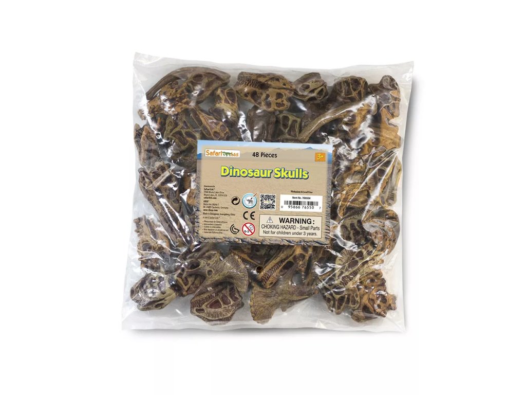 A csomag összesen 48 db-ot tartalmaz, amelyek 11 különböző dinoszaurusz koponya replikájából állnak: