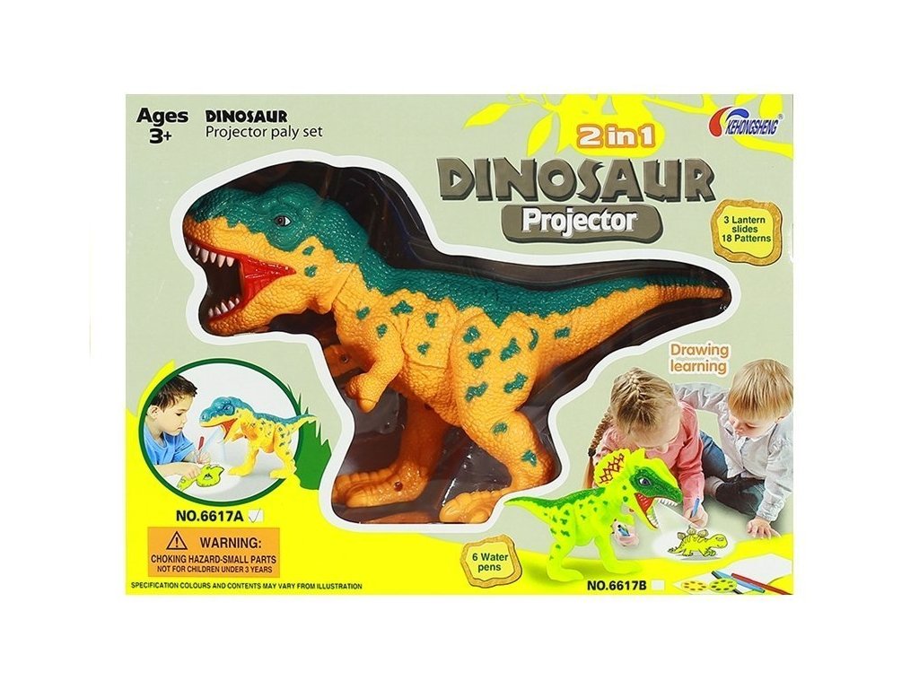 A dinoszaurusz mintakészletekből vetíti ki a képeket, amelyek a készletben található markerek segítségével nyomon követhetők a papíron. A dinoszaurusz összesen 18 képet vetít, így mindenki talál kedvére valót.