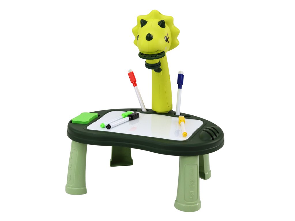 Dinoszaurusz rajzprojektor asztallal és 2 az 1-ben játékkal Kígyók és létrák zöld
