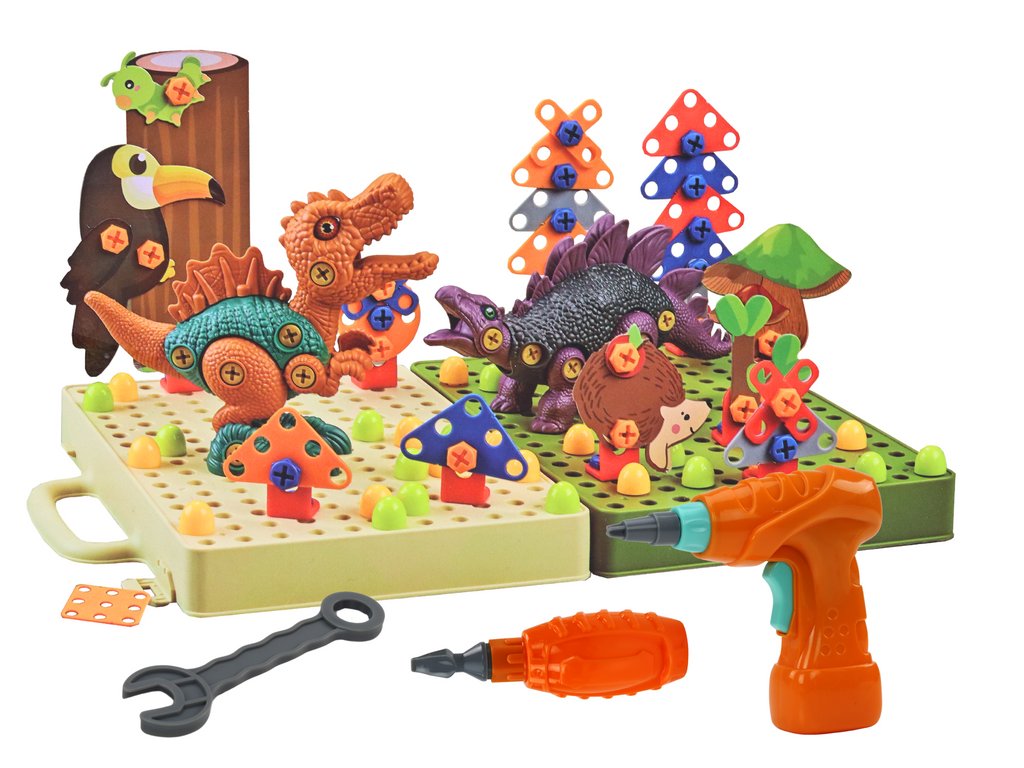 A fúróval ellátott dinoszaurusz építőkockák készlet nagyszerű eszköz a gyermek kézügyességének és építési készségeinek fejlesztéséhez. A változatos daraboknak és az egyszerű útmutatónak köszönhetően gyermeked megalkothatja kedvenc dinoszauruszait. A készlet tartalmaz egy ergonomikus fúrót és szerszámokat a könnyebb összeszerelés érdekében, a praktikus tokban pedig könnyen tárolhatók az alkatrészek, és bárhová magaddal viheted őket. Ez a játék serkenti a kreativitást és a türelmet, miközben egyedülálló lehetőséget kínál dinoszaurusz modellek építésére.