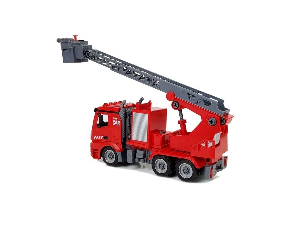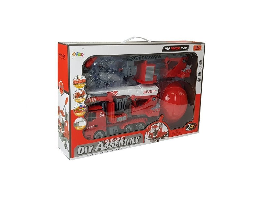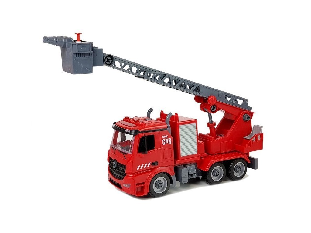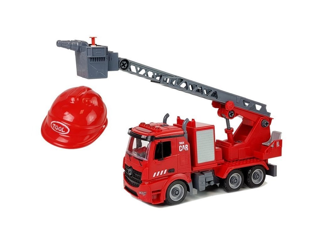 A kiváló tűzoltóautó készlet tökéletes játék azoknak a gyerekeknek, akik szeretnék elkezdeni a tűzoltó kalandot. A tűzoltóautót a készlet részét képező szerkezeti részekből kell összeszerelni. Az autó kivehető, kihúzható és 180 fokban forgatható kosáremelővel vagy vízágyúval ellátott toló-forgó létrával rendelkezik, ami valóban működik. Csak öntse a vizet a kijelölt helyre, és amikor megnyomja a gombot, a víz elkezd ömleni. A készlet tartalmaz egy sisakot, hogy gyermeke igazi tűzoltónak érezze magát.