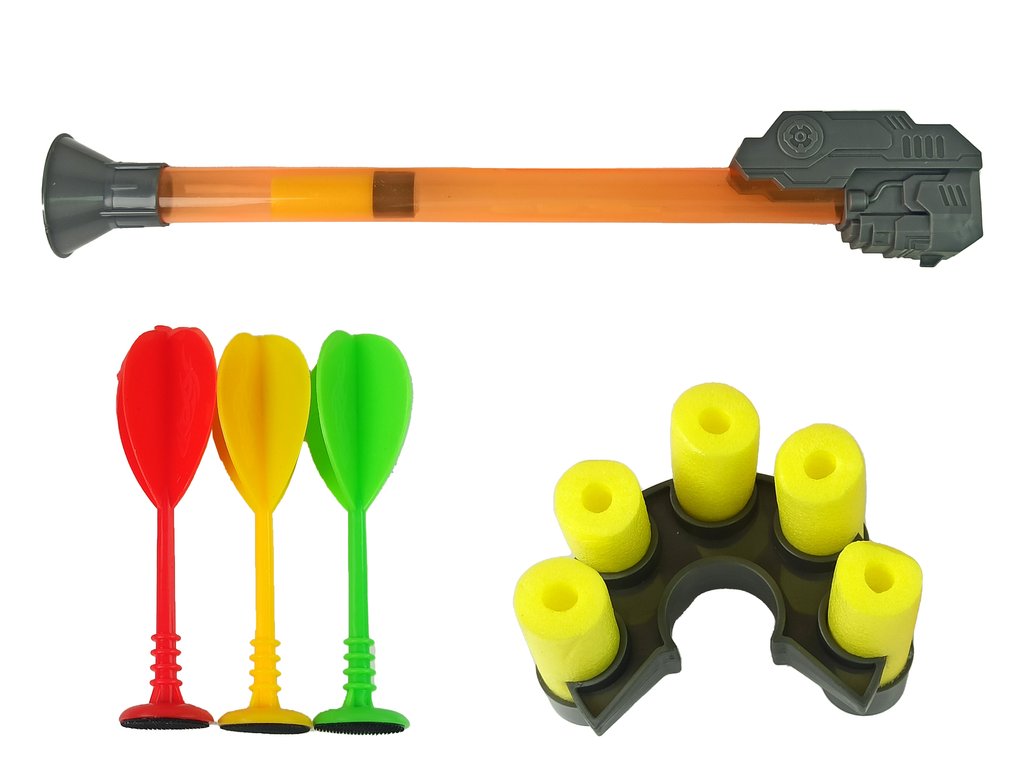 Ez a fekete-fehér darts tábla remek szórakozást nyújt az egész családnak és a barátoknak. A puha felületű célpont biztonságos szórakozást garantál. A készlet 6 műanyag tépőzáras labdát, 3 tépőzáras dartot és egy narancssárga tubust tartalmaz, amellyel 6 lövést lőhet a szájon keresztül, így ez a játék interaktív és izgalmas.
