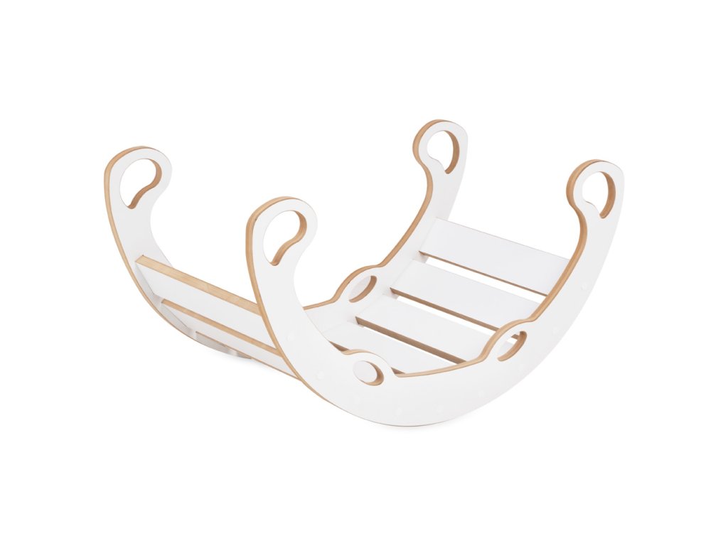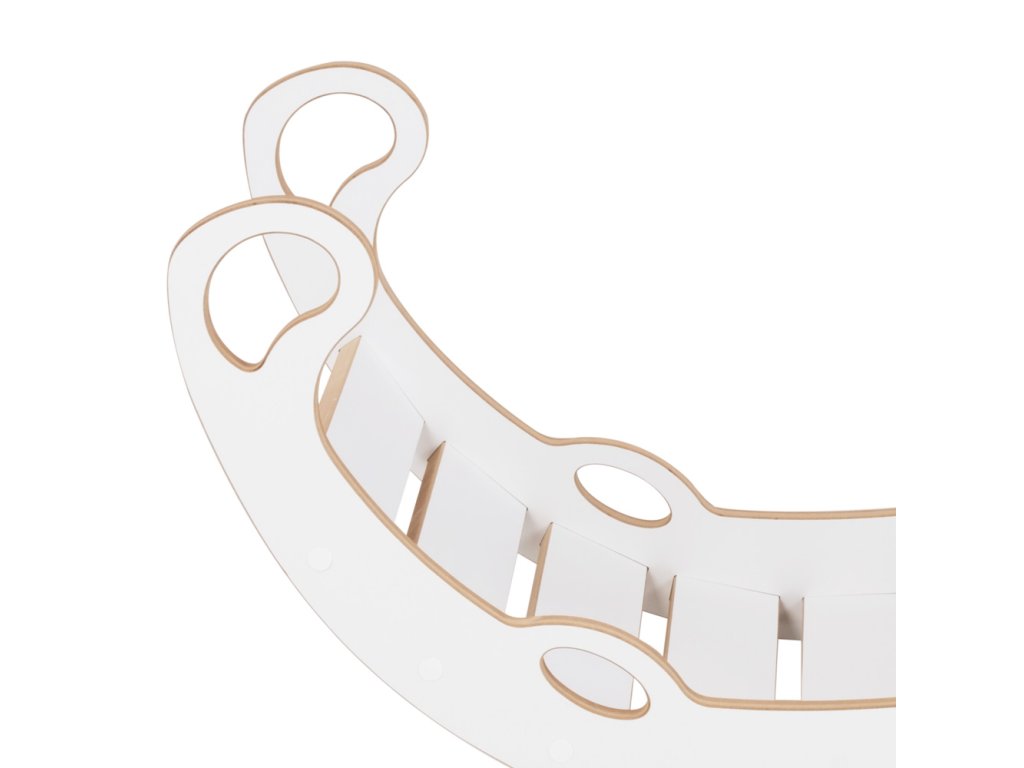A hinta kiváló minőségű MDF-ből készült – egy olyan anyagból, amely tartós, sima és biztonságos a gyermekek számára. Minden él gondosan lekerekített és lecsiszolt, valamint egy kényelmes, puha párna is tartozik hozzá, amely minden hintázást igazi élménnyé tesz. Egyszerűen fordítsa ki a hintát, és az egy masszív létrás mászókává alakul – ideális a kis felfedezők és mászók számára. Ez a használati mód támogatja a gyermekek aktivitását és az önálló játékot.