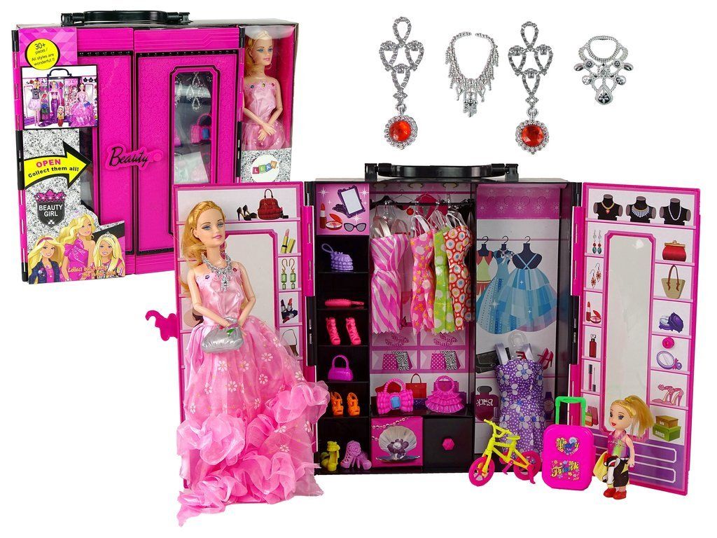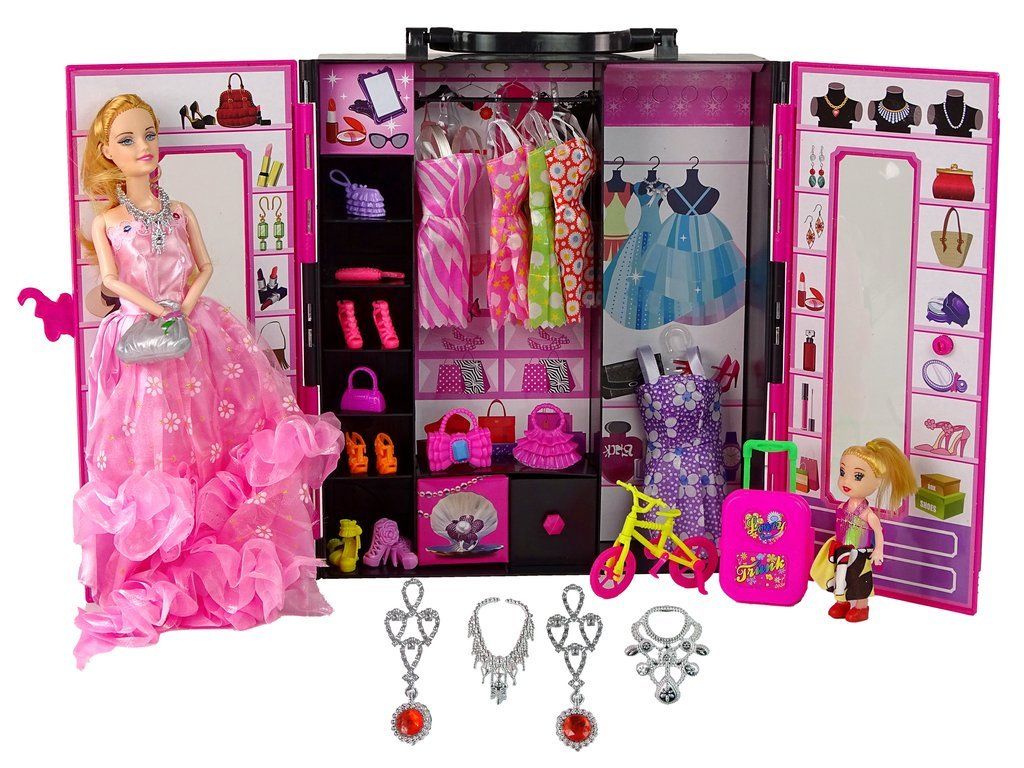 Egy nagy gardrób babával minden fiatal hölgy álma. A készlet 30 bájos kiegészítőt tartalmaz. A baba gardrób hordozó fogantyúval rendelkezik, így a gyerek bárhová magával viheti. A készlettel való játék megtanítja a gyermeket, hogy rendet tartson a szobájában.
