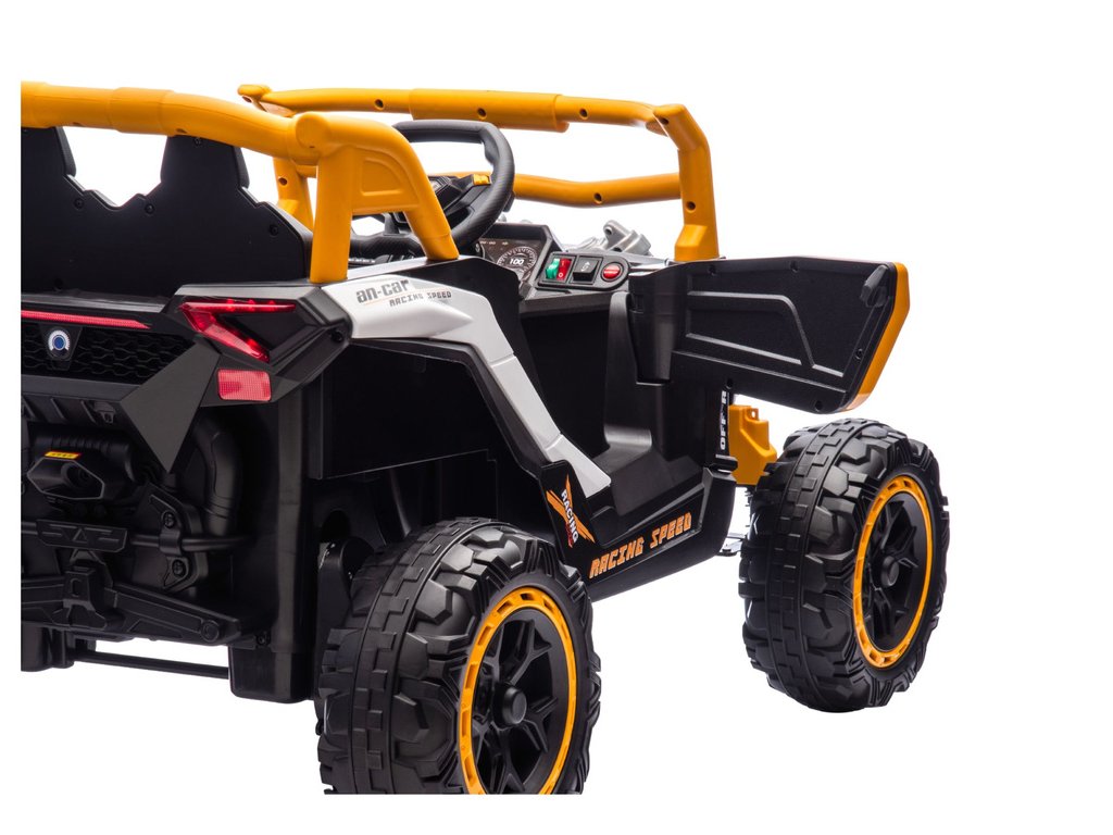 Stylový dětský vůz M2 nabízí nejen poutavý design, ale i skutečný zážitek z jízdy díky pohonu všech čtyř kol, měkkým EVA kolům a komfortnímu sedadlu z ekokůže. Auto je vybaveno moderními funkcemi jako LED osvětlení, Bluetooth a USB přehrávačem. Rodiče ocení bezpečnostní prvky včetně dálkového ovládání s nouzovou brzdou. Ideální pro děti, které chtějí řídit jako dospělí – s bezpečností pod kontrolou.