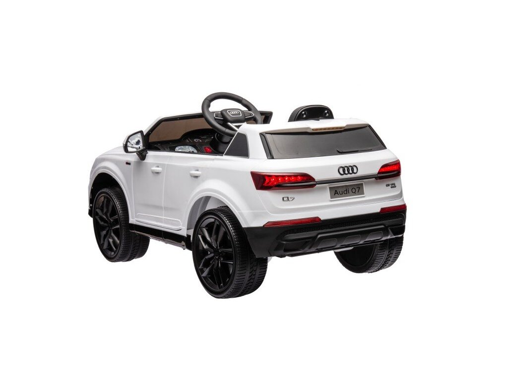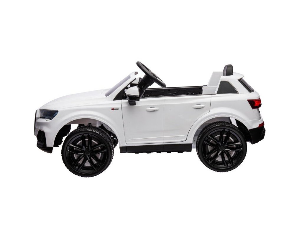 Az Audi Q7 elektromos gyermekautó a megfelelő módja annak, hogy bevezesse a gyerekeket a vezetés világába. Továbbá remek kiegészítője lehet a gyerekeknek családi sétákhoz vagy kerti időtöltéshez. A játékautó nagyon megbízható és biztonságos. A biztonságról az automatikus fék gondoskodik, amely a gázpedál elengedésekor aktiválódik. Továbbá a biztonsági övek, és természetesen a távirányítónak köszönhetően Ön is. Az elektromos játékautó kényelmes, ergonomikusan kialakított, ökobőrből készült üléssel rendelkezik. Ezen kívül a játékautó EVA kerekekkel rendelkezik, amelyek különböző típusú terepet bírnak, és csendesek. A játékautó LED-világítással és FM-rádióval, valamint SD, AUX, USB és MP3 bemenetekkel ellátott zenepanellel is rendelkezik. Gyermekeknek 3 éves kortól alkalmas.