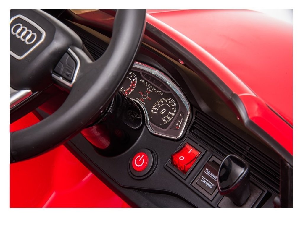 A licencelt Audi márka elektromos gyerekjátékautója minden bizonnyal lenyűgözi a minőségi járművek szerelmeseit. EVA habszivacs kerekekkel van felszerelve, amelyek csendesek és különféle tereptípusokat bírnak. A gyermek puha ökoBőrülésben ül.