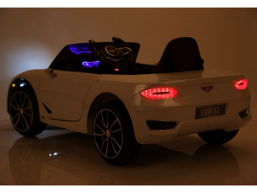 Műszaki adatok -Bentley EXP12 fehér motor -2 x 12V / 12000RPM - SF390-C akkumulátor -2 x 6V / 4,5Ah / 20h vezérlő -2,4 GHz, 3 sebesség, STOP biztonsági gomb, kerekek -EVA hab kerekek, átmérő 22 cm, szélesség 7 cm, Kormányzás - Szabadindítás, elöl/hátul, lámpák -LED, első lámpák, hátsó lámpák,