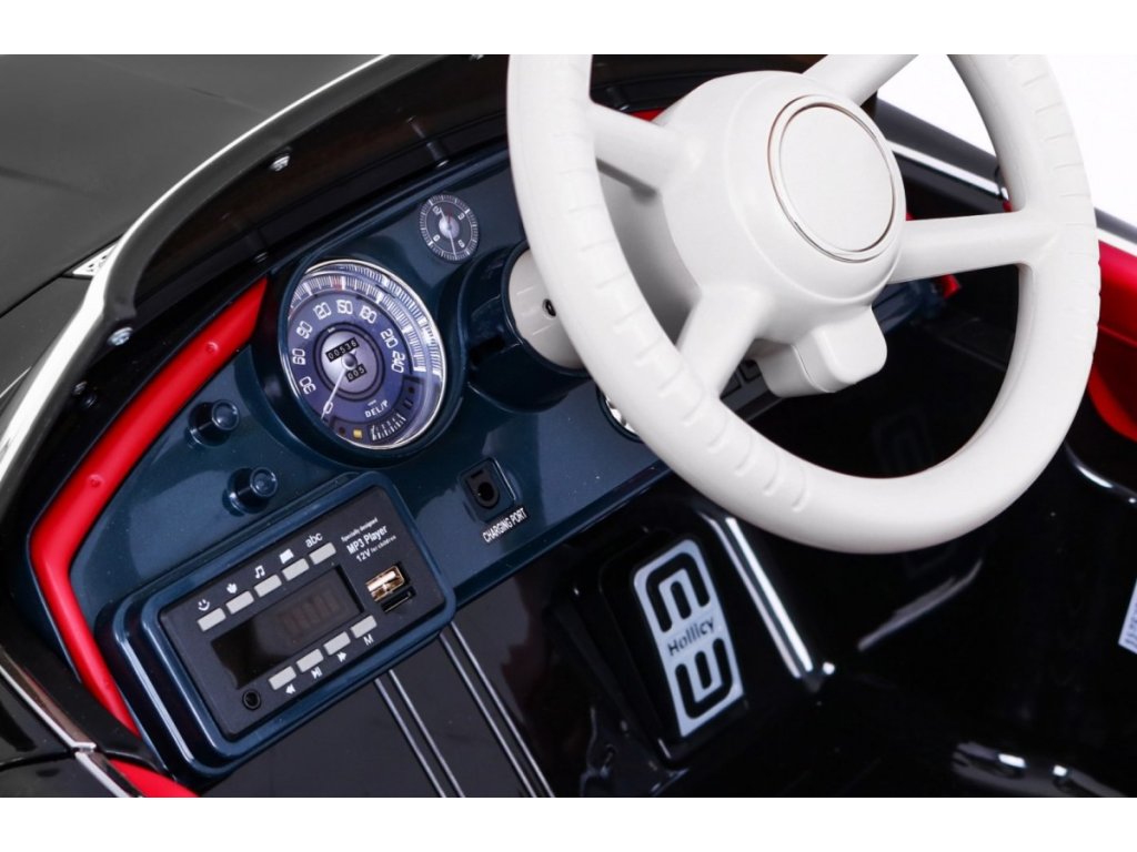 BMW 507 Retro elektromos autó fehér színben. Elektromos és a kicsi izzó első és hátsó lámpákkal van felszerelve. MP3, SD kártya és USB csatlakozást tartalmaz. A gyermek biztonsága érdekében biztonsági öv van az ülésen elhelyezve. Ha lovagolni szeretne, üljön be kényelmesen az elektromos autóba , majd nyomja meg a START gombot. A készlet tartalmaz egy távirányítót is a szülőknek, amit akkor használhatsz, ha a gyermek még nem tudja egyedül vezetni a játékot.