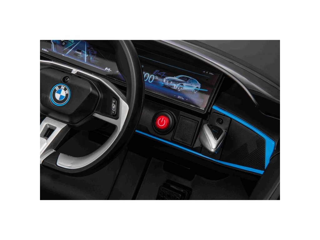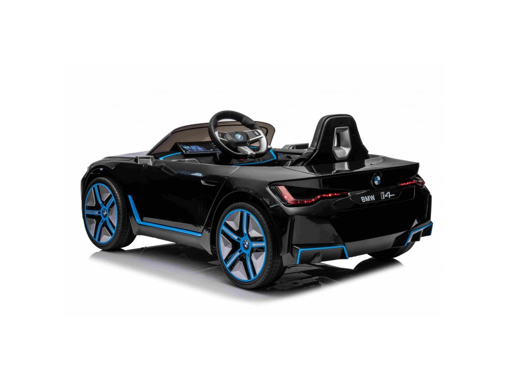 Gyermekengedélyes BMW i4 játékautó gazdag felszereltséggel és innovatív dizájnnal. EVA hab kerekekkel van felszerelve, amelyek csendesek és nem zavarják a vezetést.
