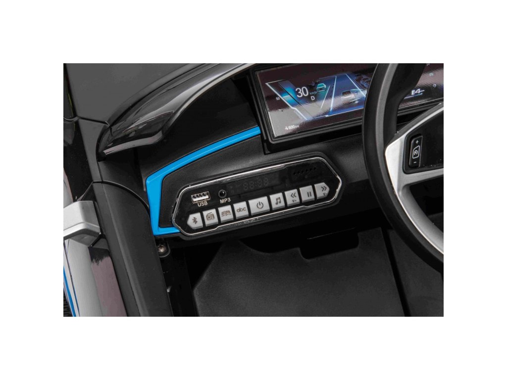 A játékautó belseje környezetbarát bőrből készült bőrüléssel , Bluetooth és MP3-as zenepanellel, USB, AUX bemenetekkel és dallamgombokkal van felszerelve. Világítsa meg utazását első és hátsó LED- lámpákkal.