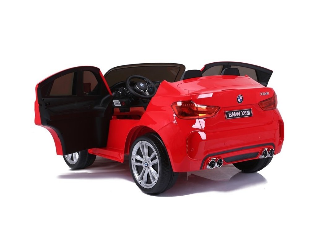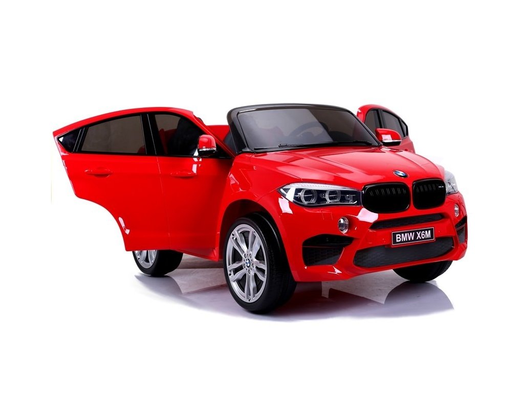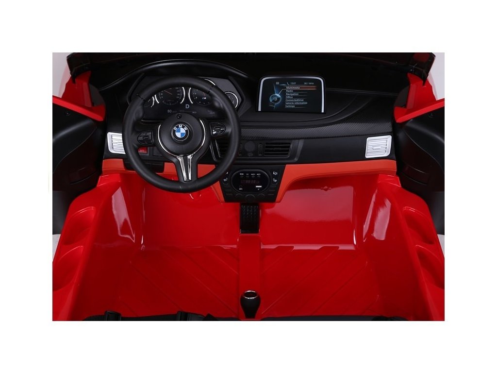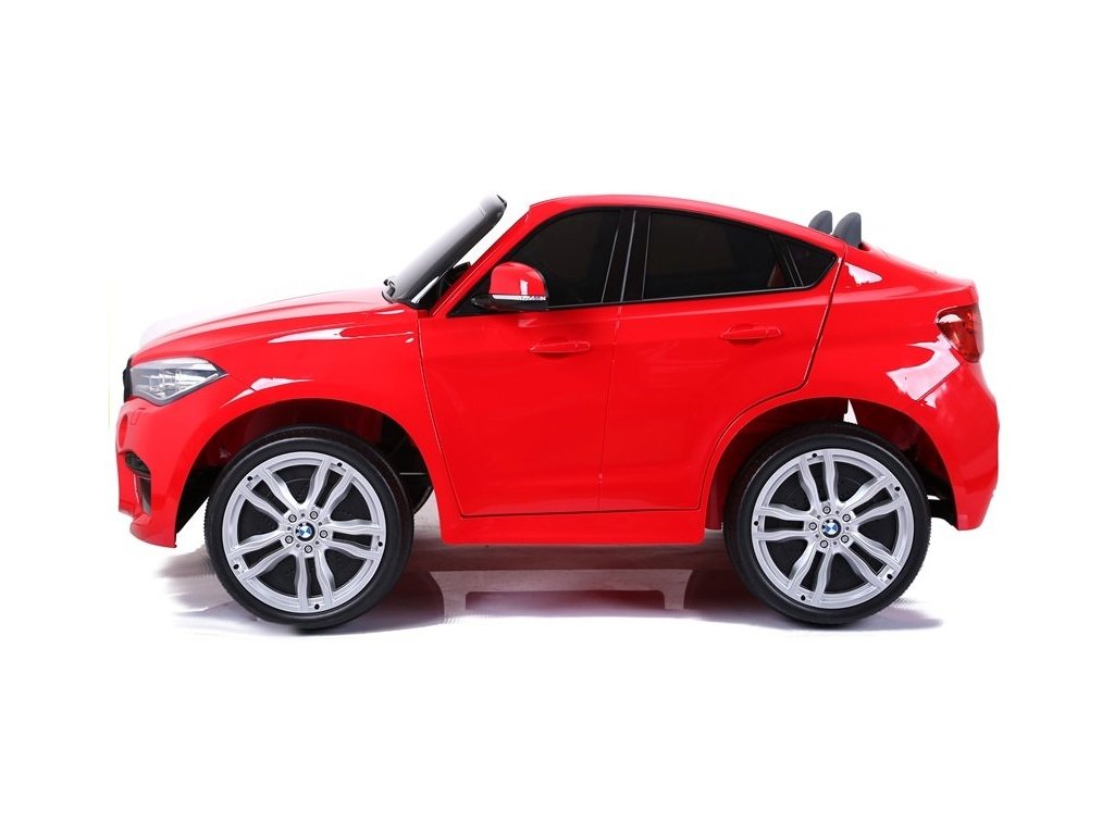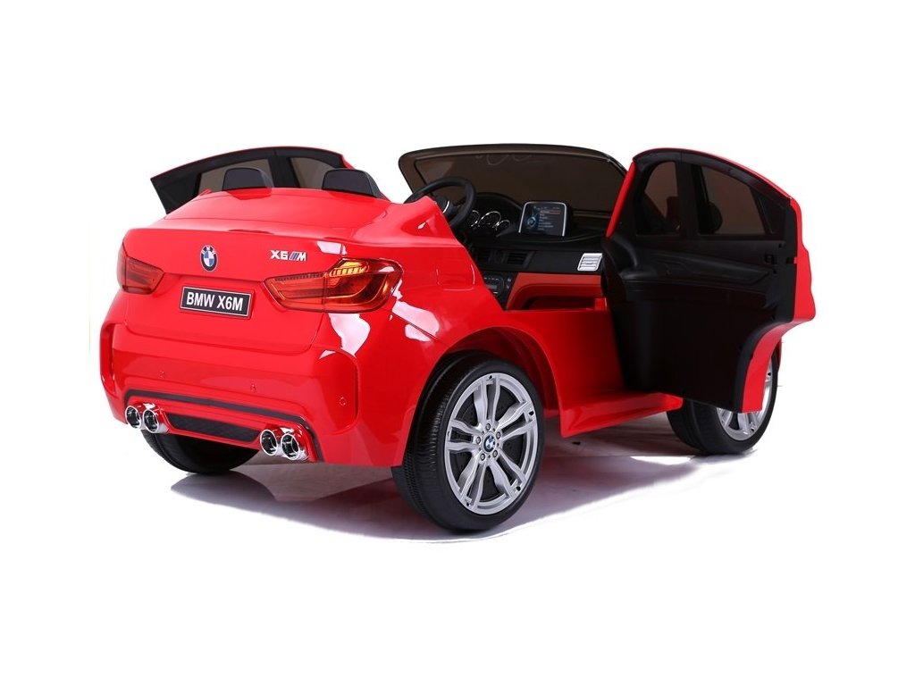 Gyermek BMW X6M elektromos játékautó innovatív távirányítóval a szülők számára. Az elektromos játék kényelmes üléssel rendelkezik, és az ülésre biztonsági öv van elhelyezve a gyermek biztonsága érdekében. A játékautó műszerfallal, kormánnyal, izzó első lámpákkal és audio panellel van felszerelve. A jármű kétféleképpen irányítható, vagy a szülőknek szánt távirányítóval, ahol a szülő választja meg a menet irányát és sebességét, vagy a gyermek teljesen önállóan vezetheti a játékautót . Az elektromos játék kerekei puha habból készültek, így sima és kellemes utazást tesznek lehetővé. BMW X6M a nagy autók minden szerelmesének!