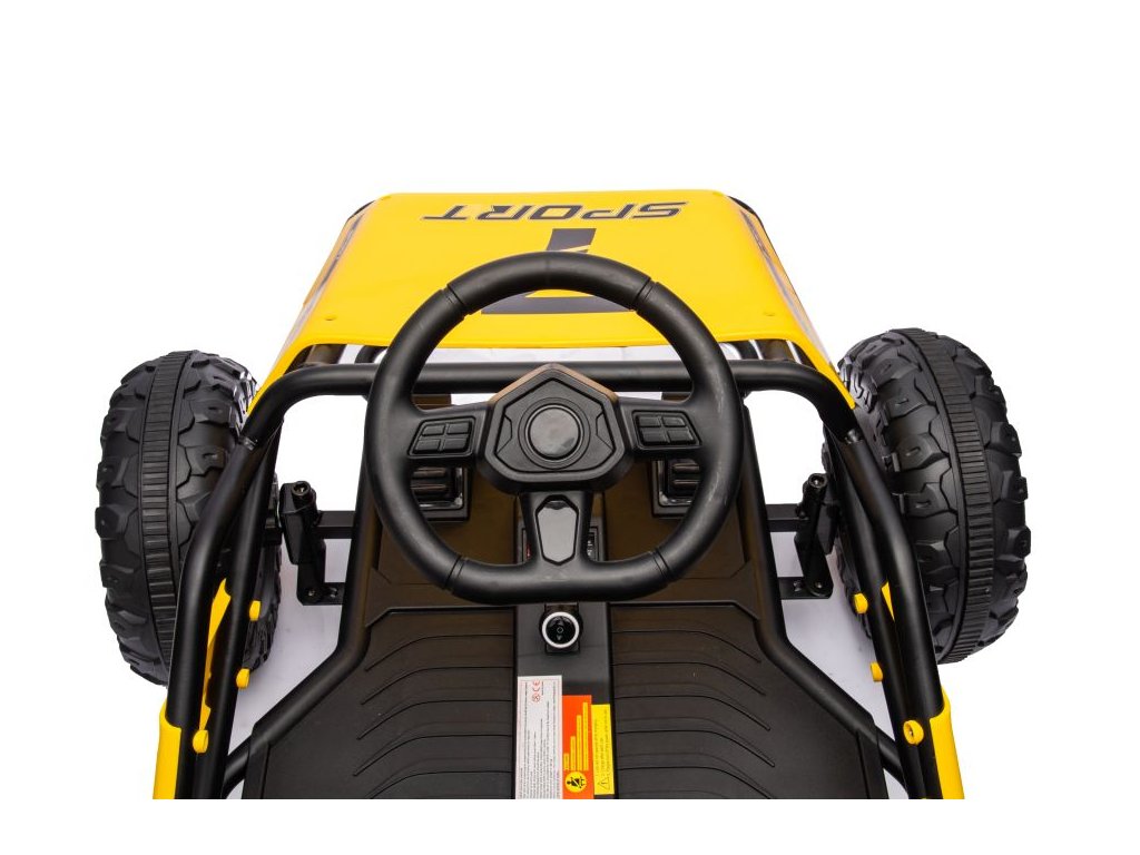 A Buggy elektromos autó nem hiányozhat egyetlen gyerekgarázsból sem. A játékautó 24V14Ah akkumulátorral működik. A kocsi maximális terhelhetősége 60 kg.