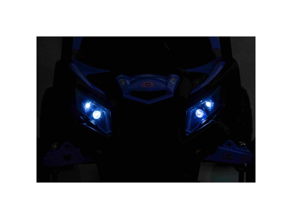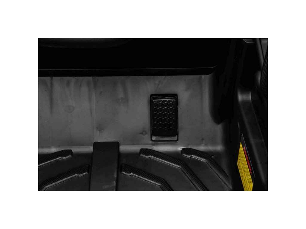 Az autót egy 2,4 GHz-es frekvencián működő távirányítóval irányíthatod. A távirányító három sebességfokozattal és egy biztonsági STOP gombbal rendelkezik, amely megnyomására azonnal leállítja az autót. Az ülés ekológikus bőrrel van bevonva és biztonsági övekkel rendelkezik.