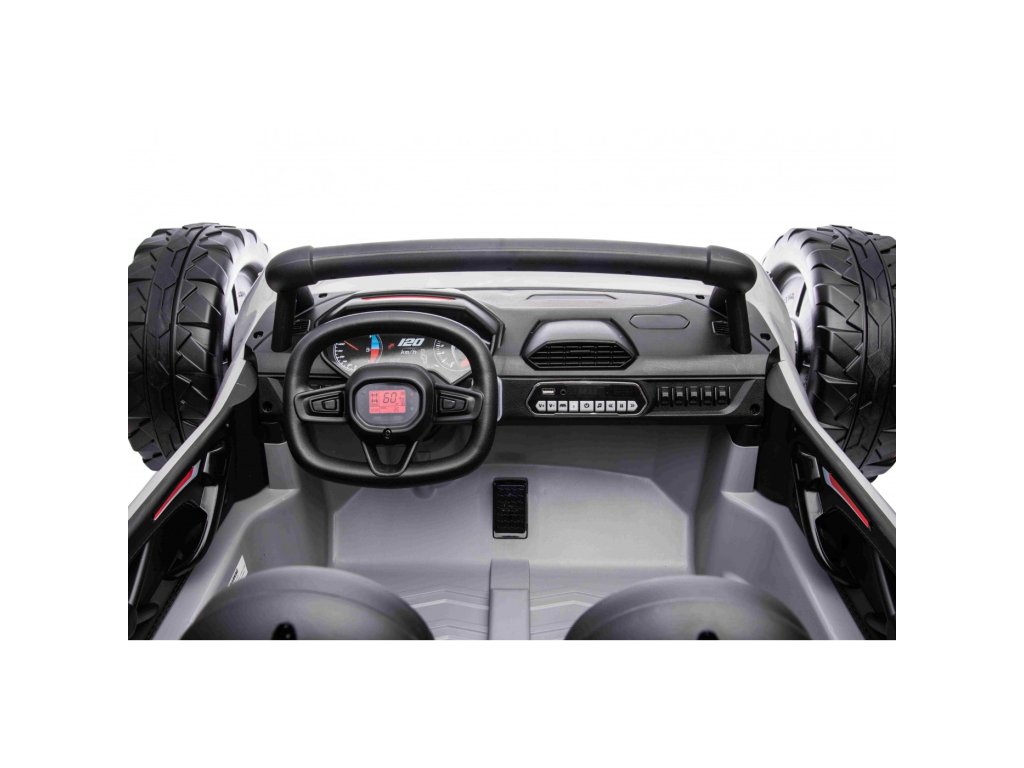 A két nagy teljesítményű, 400 W összteljesítményű Buggy elektromos játékautó egyetlen gyerekgarázsból sem hiányozhat. A játékautó 24V-os 7Ah- s akkumulátorral működik. A kocsi maximális terhelhetősége 50 kg. Utazás közben az MP3, Bluetooth, AUX és USB zenepanel minden bizonnyal érdekli a gyermeket.