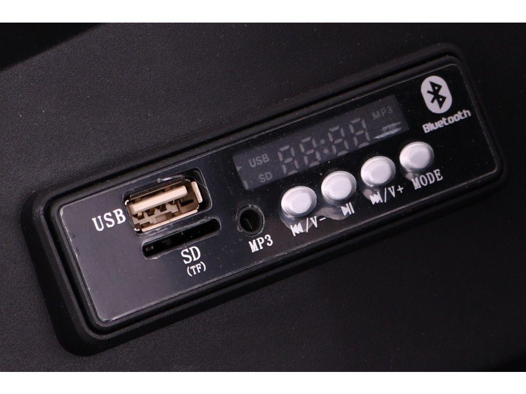 Az elektromos játékautó gyártása során a legapróbb részletekre is odafigyeltek, mint például a biztonsági övekre, a bőrülésre, a zenepanelre és a fényeffektusokra.