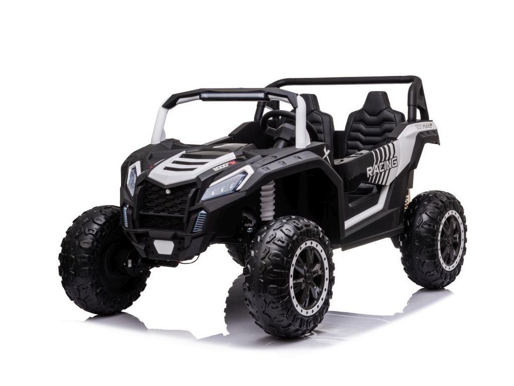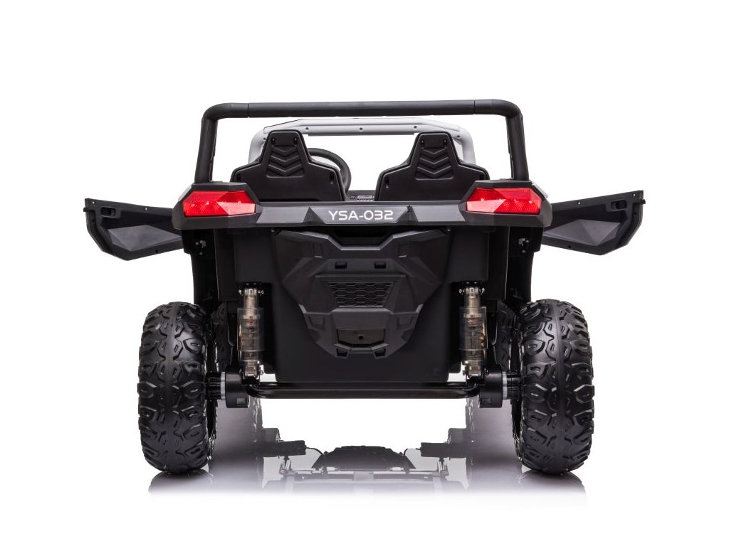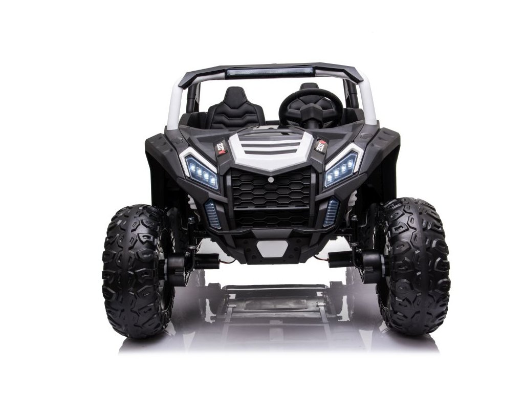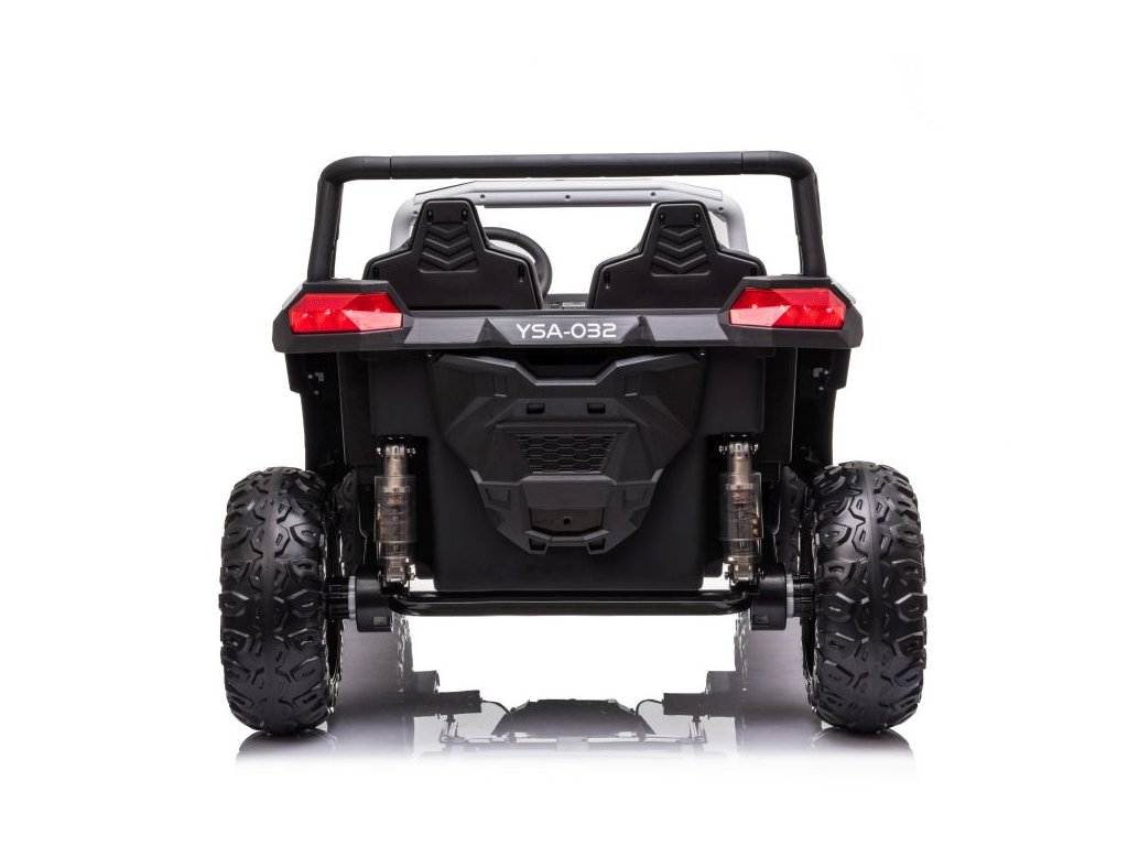 Gyermek elektromos autó Buggy UTV négy nagy teljesítményű 200 W-os villanymotorral. A játékautó könnyedén megbirkózik bármilyen terepen. Az ökológiai bőrből készült ülésben akár két gyerek is kényelmesen elfér, hiszen a játékautó akár 60 kg- os teherbírással is büszkélkedhet.
