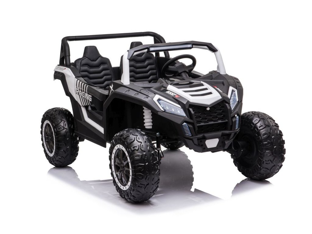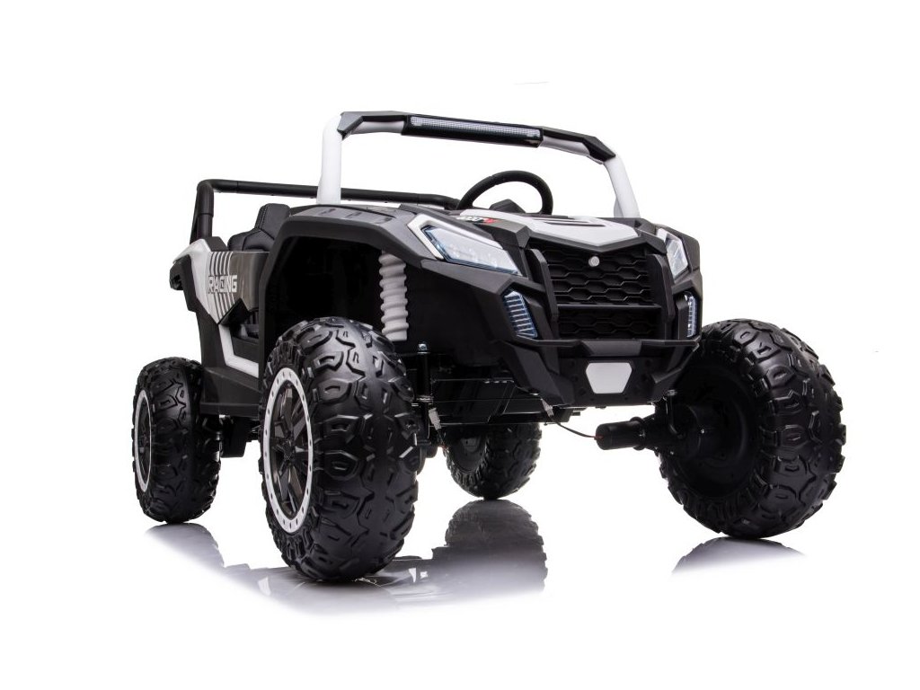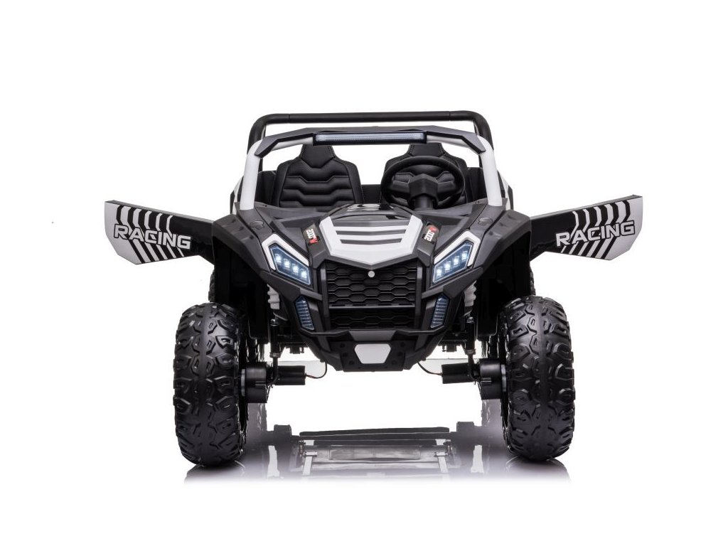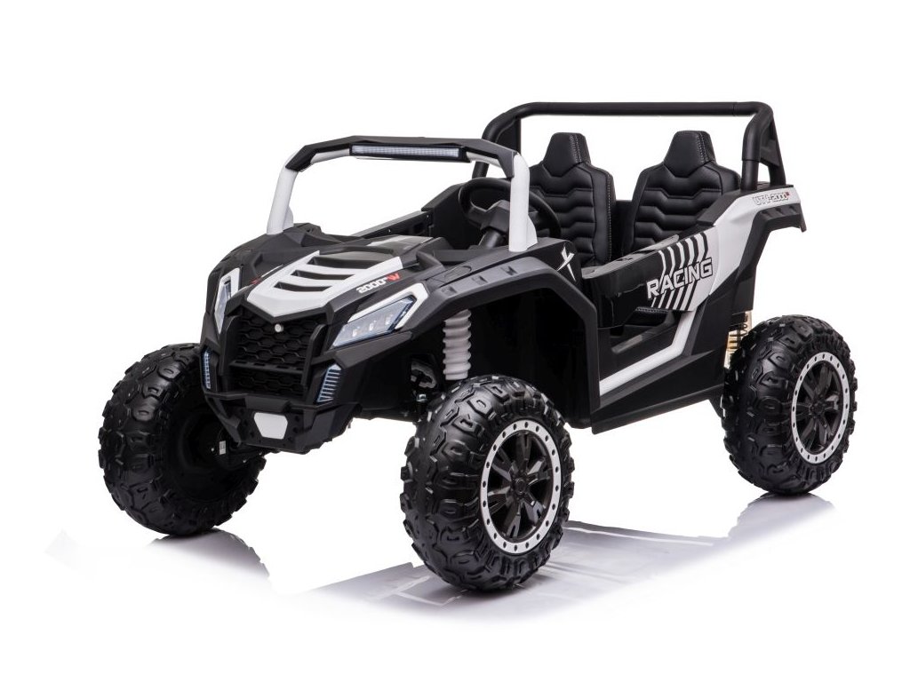Gyermek elektromos autó Buggy UTV négy nagy teljesítményű 200 W-os villanymotorral. A játékautó könnyedén megbirkózik bármilyen terepen. Az ökológiai bőrből készült ülésben akár két gyerek is kényelmesen elfér, hiszen a játékautó akár 60 kg- os teherbírással is büszkélkedhet.