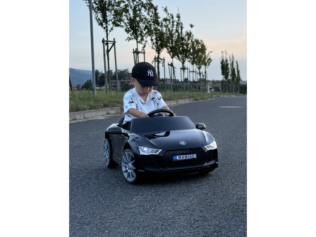 A játékautó belseje környezetbarát bőrüléssel , biztonsági övekkel , zenepanellel AUX, MP3, USB bemenetekkel és dallamokkal ellátott gombokkal van felszerelve. Az első LED-lámpák megvilágítják az utat.