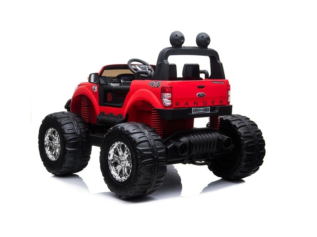 A Ford Ranger Monster Truck elektromos autóban minden megtalálható, ami a nagyszerű szórakozáshoz szükséges. A 43 cm átmérőjű és 20 cm széles óriáskerekek Eva anyagból készülnek, amely alkalmazkodik a különböző tereptípusokhoz. Puha ökológiai bőrből készült ülés és 4 lengéscsillapító gondoskodik a kényelmes utazásról. Vezetés közben a gyerek 3 sebességet választhat 3-tól 5 km/h-ig és a Bluetooth-nak vagy USB-nek köszönhetően lejátszhatja kedvenc dalait. Az autó büszkesége az LCD MP4 érintőképernyő .