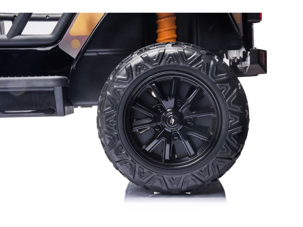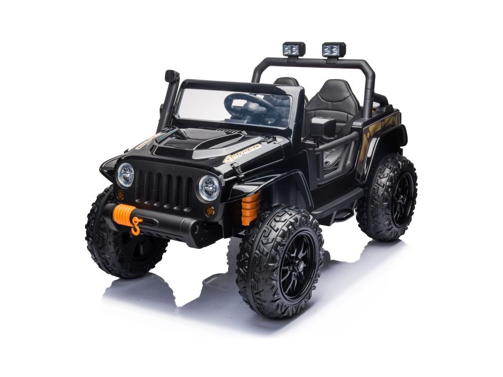 A Jeep 4Speed elektromos autó négy 45W-os motorral és egy 12V-os 10Ah-s akkumulátorral rendelkezik. A játék zenepanellel rendelkezik előre lejátszott dallamokkal, USB és Bluetooth bemenetekkel. A kürt a kormányon található. A játékautó elülső LED lámpákkal van felszerelve. A játékautót a kulccsal indítják, és hallani fogja a motor jellegzetes hangjait .