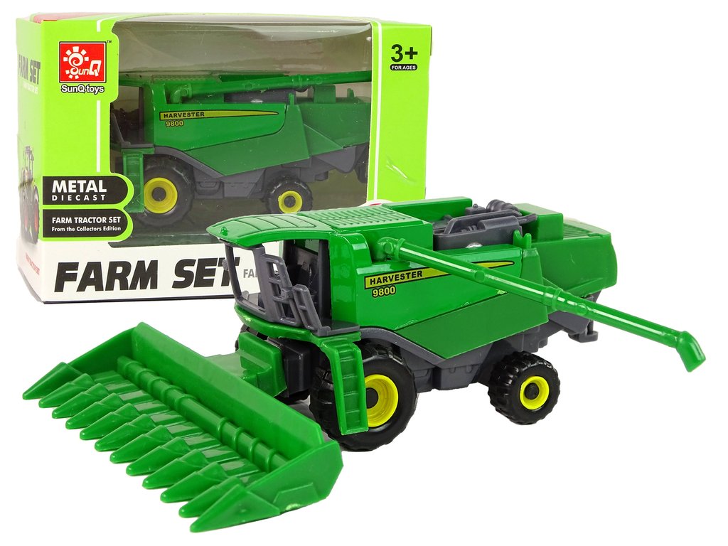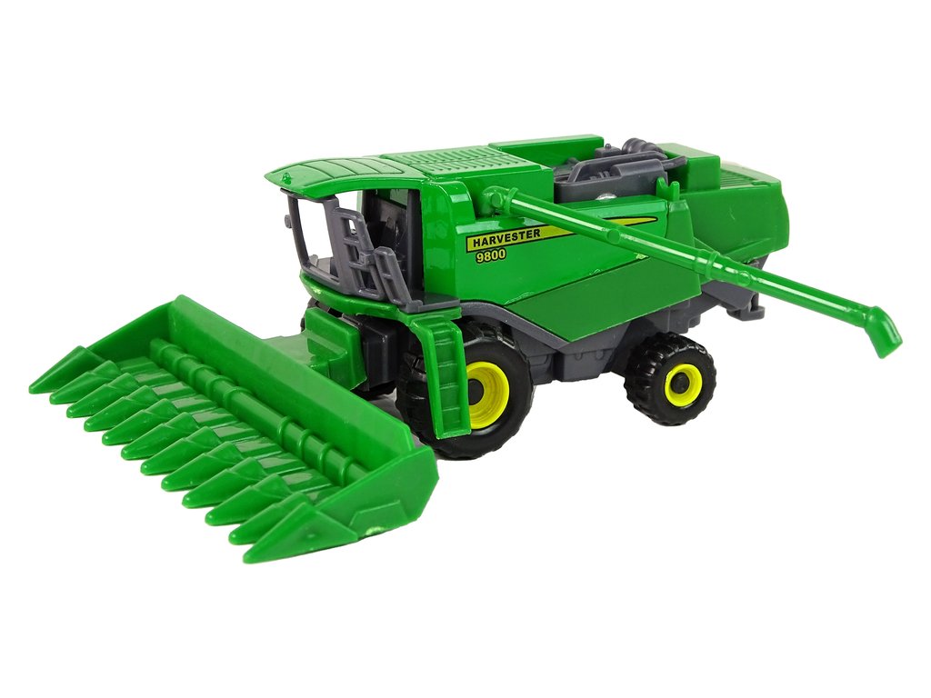 A kis zöld műanyag kombájn minőségi játék. A gyerekeket elragadtatja valósághű megjelenése és kifinomult részletei. A betakarítógép kivehető részekkel van felszerelve, amelyek interakcióval gazdagítják a játékot és támogatják a kézi készségek fejlesztését.