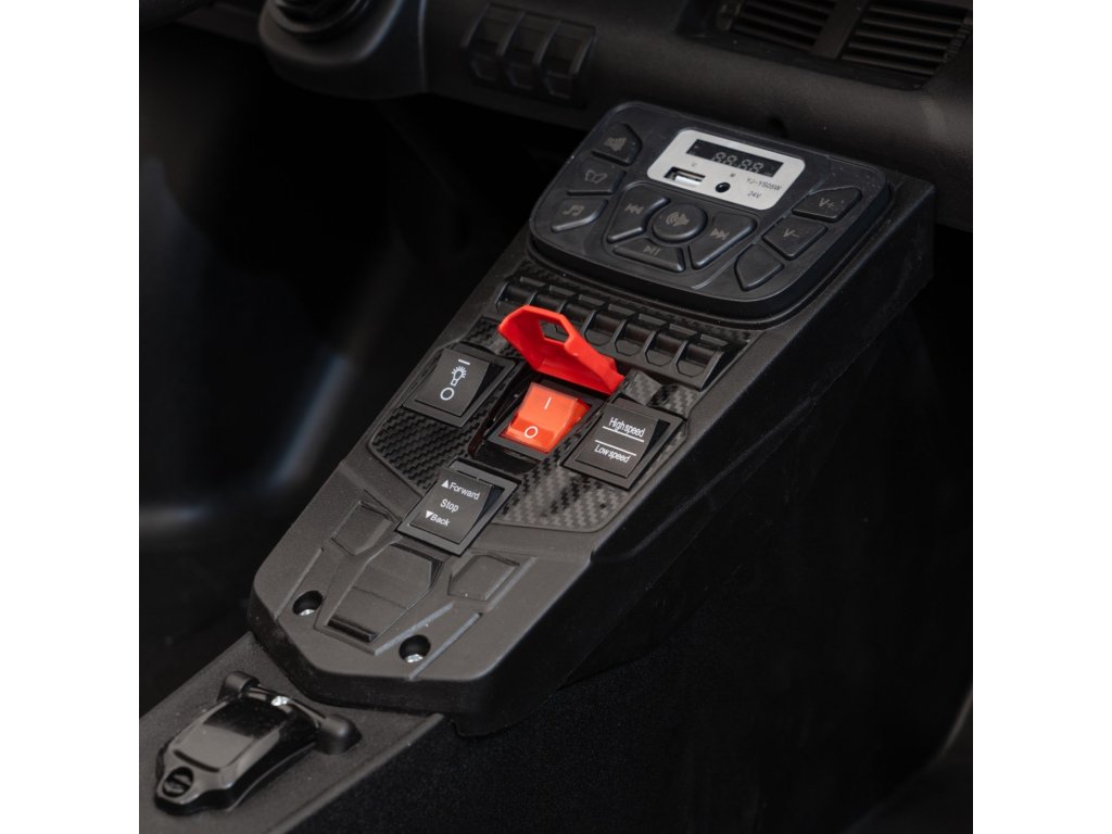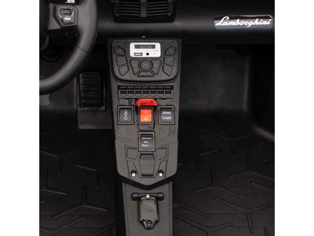 A Lamborghini által engedélyezett elektromos gyerekautó exkluzív ökoBőrüléssel, MP3 , USB, AUX és Bluetooth bemenetekkel ellátott zenepanellel, előre felvett dallamokkal ellátott gombokkal, valamint első és hátsó LED-es lámpákkal van felszerelve. Indításkor jellegzetes motorhangokat fog hallani.