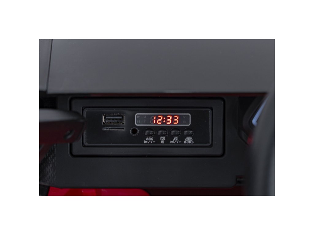 A játékautó távirányítóval vezérelhető, amivel szabályozható a jármű sebessége, változtatható a menetirány vagy a Stop biztonsági gomb segítségével azonnal leállíthatjuk a járművet. A jármű automatikus fék funkcióval van felszerelve, amely akkor aktiválódik, amikor elengedi a lábát a gázpedálról. Ezenkívül a biztonsági övek gondoskodnak a biztonságról.