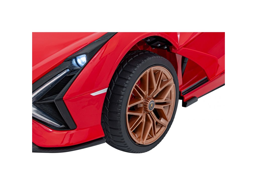 A Lamborghini Sian elektromos autó négy motorral rendelkezik, amelyek összteljesítménye 106 W, és egy akkumulátora 12 V 7 Ah kapacitású. Az EVA hab kerekek és az ökológiai bőrrel borított ülés gondoskodik a kényelmes utazásról. Az MP3, USB, AUX és SD kártya bemenettel rendelkező zenepanel minden bizonnyal kellemesebbé teszi az utazást a gyermek számára . Teherbírás a játékautó 25 kg . A játékautó első és hátsó LED világítással és nyitható ajtókkal rendelkezik.